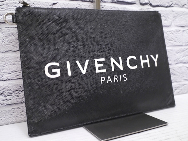 美品◆ GIVENCHY ジバンシィ ビッグロゴデザイン 男女可 サフィアーノ レザー クラッチ バッグ ドキュメントケース ポーチ 黒◆ 定番モデル