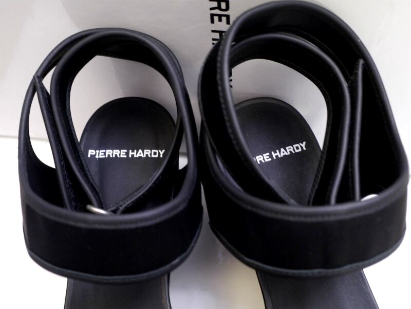 展示品10万★PIERRE HARDY ピエールアルディ プラットフォーム 厚底 サテンxレザー ストラップ サンダル黒★ 既に入手困難の激レアモデル♪
