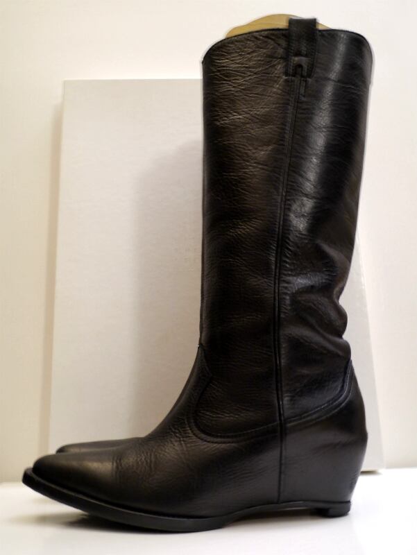 美品15万◆MartinMargiela 22 マルタンマルジェラ レディース ウェッジ インヒール ロング ブーツ 黒 37◆ 美シルエットの着回しアイテム♪