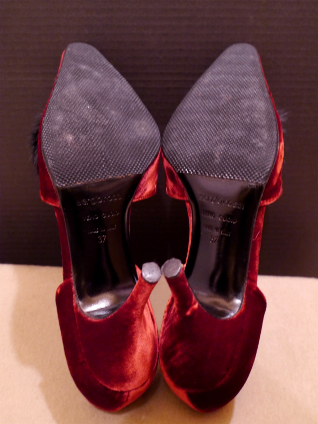 ※ベルベットの素材上どうしても毛羽立ちのようになってしまいますが、全体的に大きく目立つようなダメージはなく使用回数が少ないので中古のパンプスとしては良い状態を保っています。あくまでも中古品なので神経質な方はご遠慮下さい。