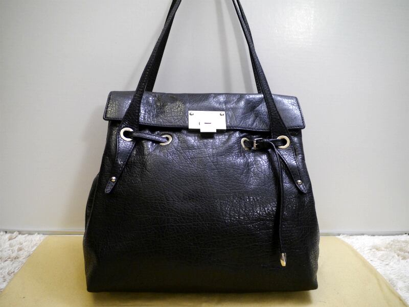 美品22万★JIMMY CHOO ジミーチュウ ラモナ A4対応 ビジネス可 レザー トート ショルダー バッグ 黒★ 通勤通学にも大活躍のA4対応トート♪