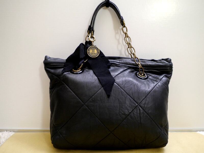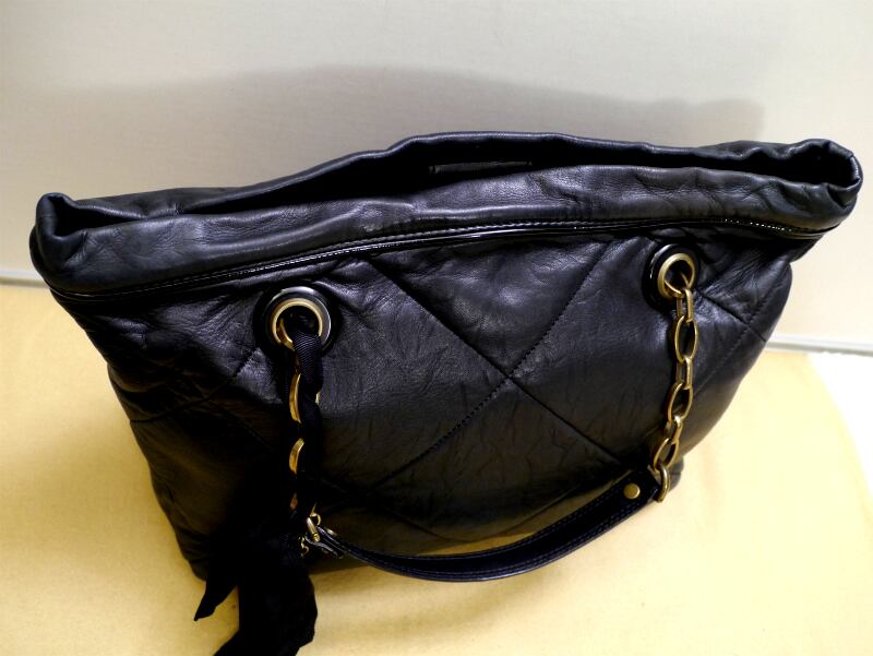 レア12万◆LANVIN PARIS ランバン レディース チェーンショルダーリボンデザイン レザー トート バッグ黒◆ ファーストラインの上質レザー