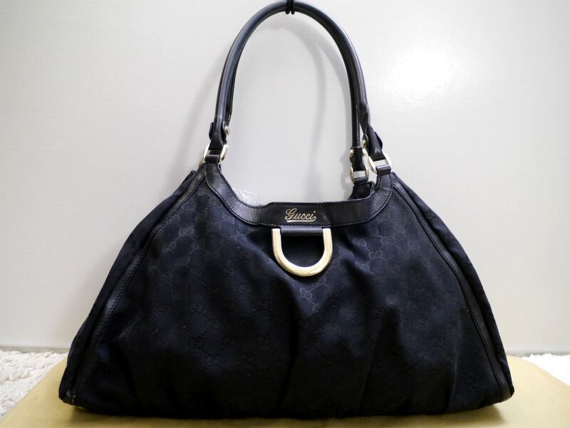 14万◆GUCCI グッチ ギャザーデザイン キャンバスxレザー ワンショルダー トート ハンド バッグ 黒◆ トート型にも変形可能な秀逸アイテム