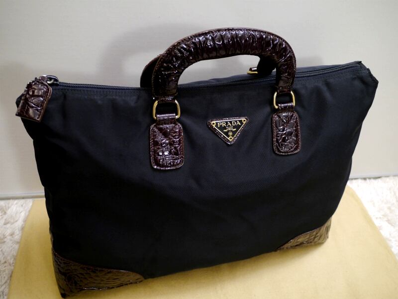 PRADA(プラダ) ユニセックス ナイロンxクロコ型押しレザー切替 トート ハンドバッグ(ブリーフケース)です。