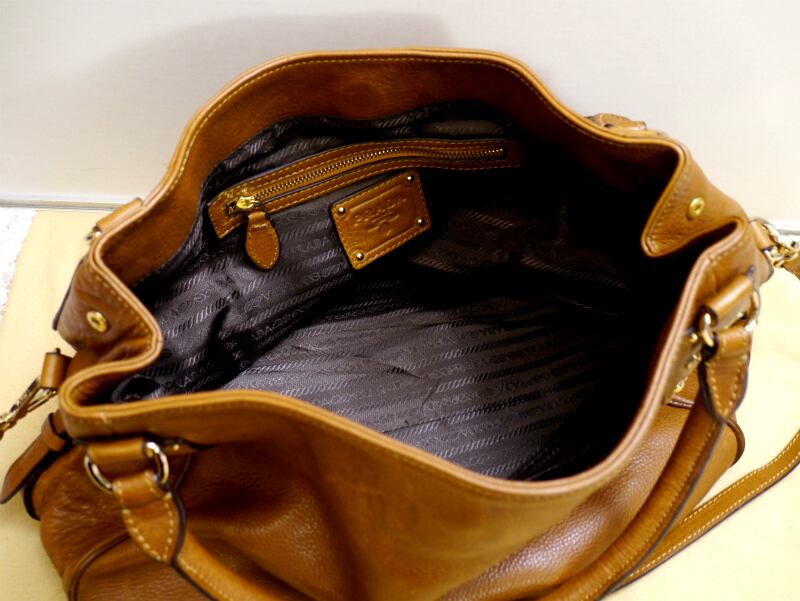 レア◆PRADA プラダ A4対応ビジネス可 チャームデザイン ハンドショルダー2way レザー トート バッグ 茶◆ 通勤通学にも大活躍の2wayモデル