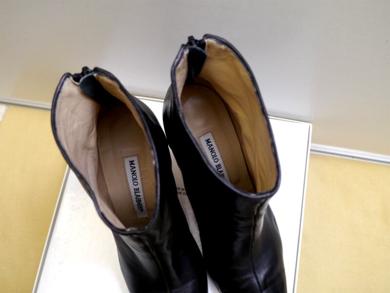 MANOLO BLAHNIK(マノロブラニク) バックジップデザイン レザー ヒール ショート ブーツです。