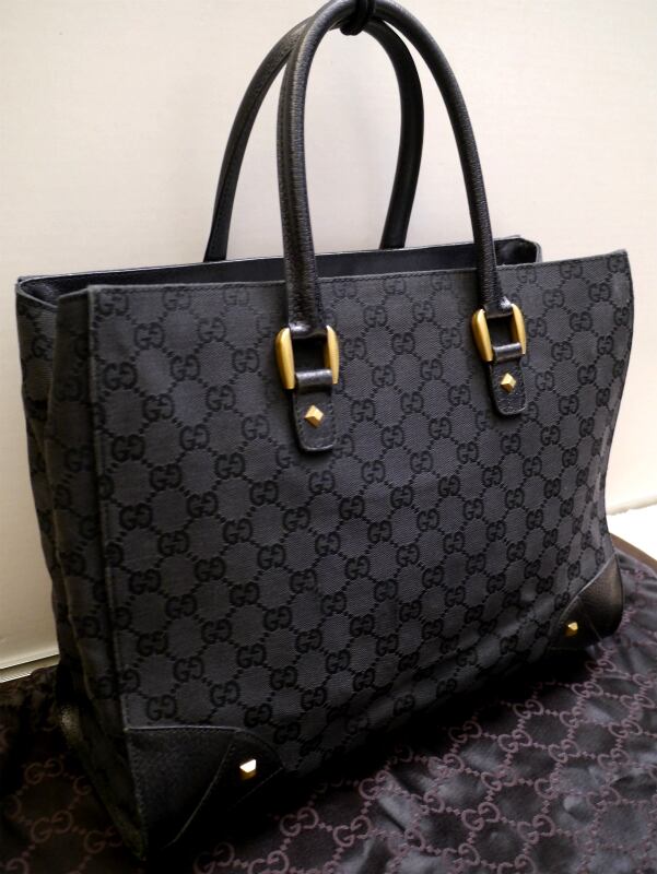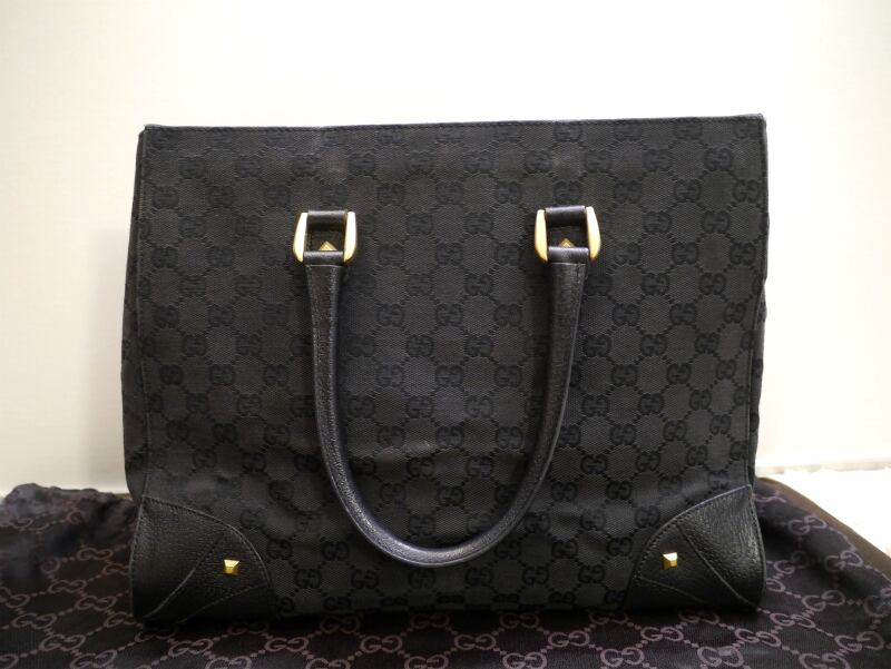 16万◆GUCCI グッチ GG柄xスタッズ ユニセックス A4対応ビジネス可 キャンバスxレザー トート ハンド バッグ◆ 書類対応で通勤通学に大活躍