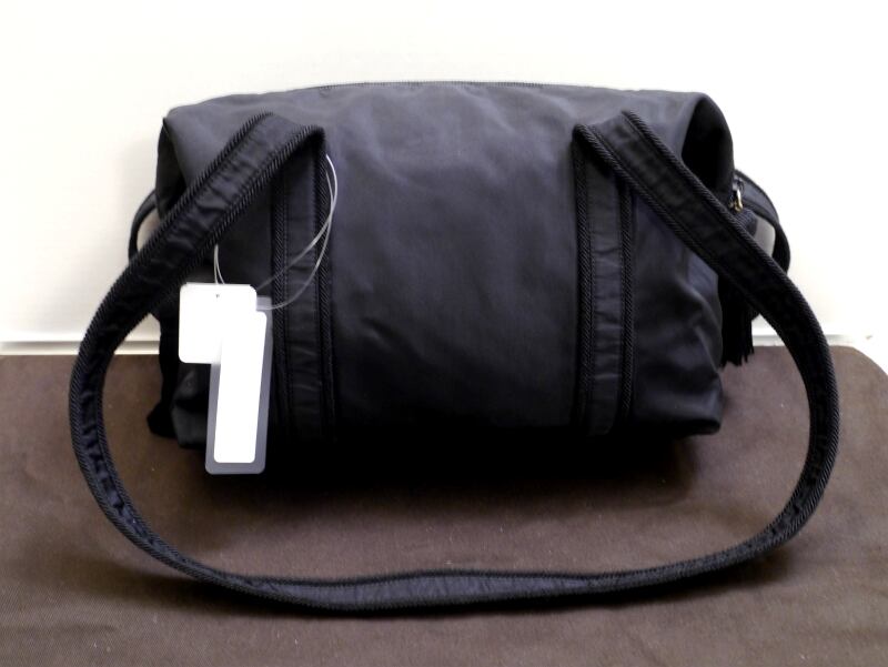 美品◆PRADA プラダ ロゴ刺繍 フリンジチャームデザイン ナイロンxキャンバス ショルダー バッグ 黒◆ フリンジチャームがさりげなくお洒落