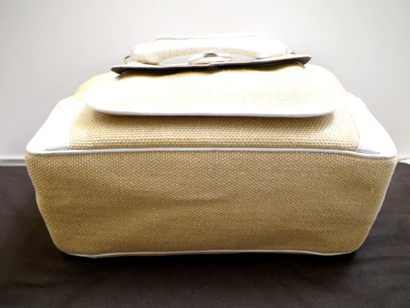 レア20万◆CELINE セリーヌ ブギーバッグ フラップデザイン リネンxレザー かご ハンド バッグ 白x茶◆ 色褪せない永遠のアイコンモデル♪