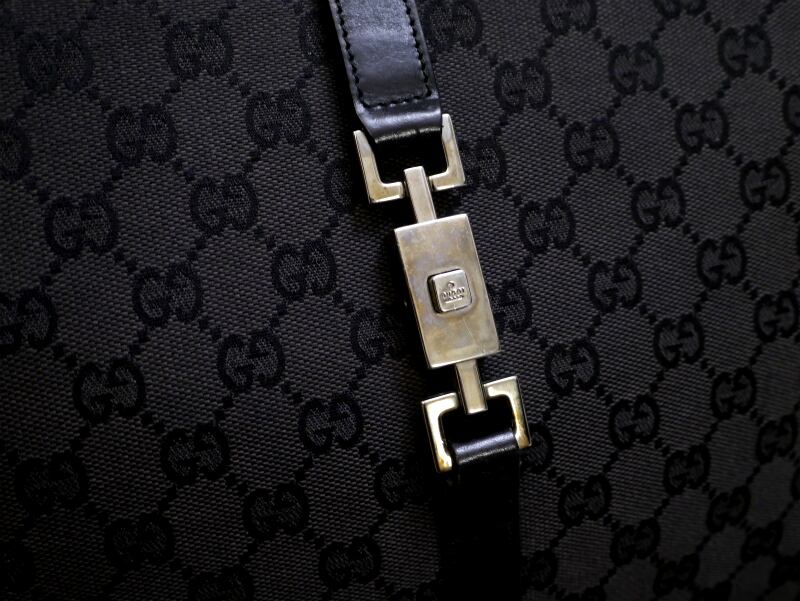 カジュアルになりがちなキャンバス素材も、上質なレザーとのコンビやジャッキーの象徴でもある金具、シックな色味のGG柄でGUCCIのアイテムらしくとても高級感のある仕上がりです。