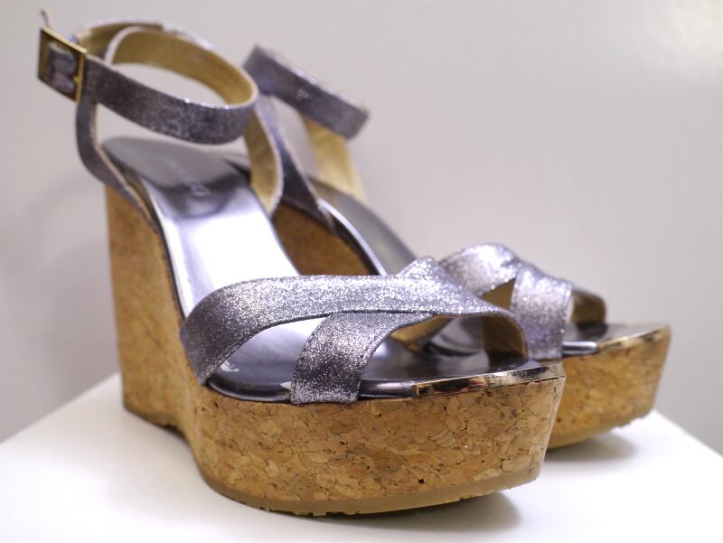 春夏定番★JIMMY CHOO ジミーチュウ グリッターデザイン コルクウエッジソール ストラップ サンダル 37★ 足元のワンポイントにピッタリ♪