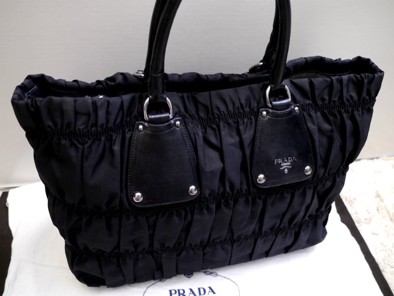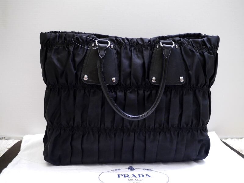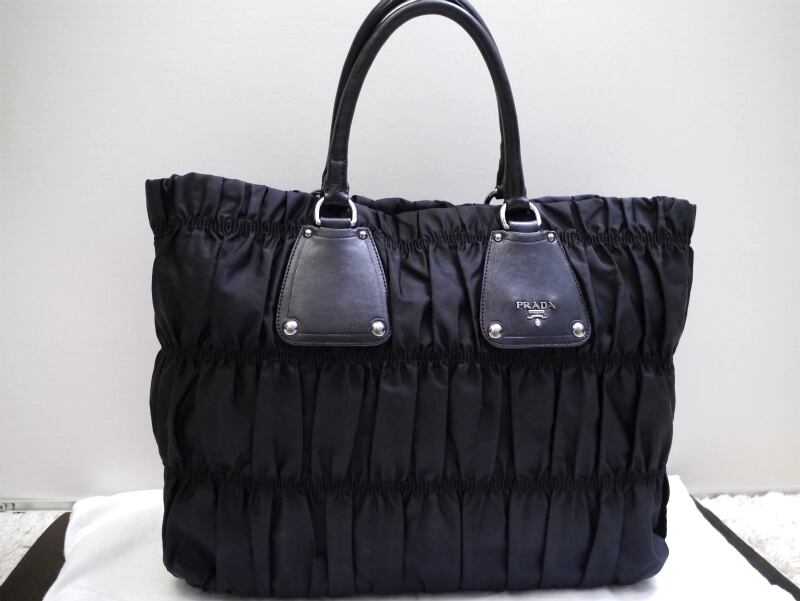 PRADA(プラダ) ギャザーデザイン ナイロンxレザー切替 ハンド トート バッグです。