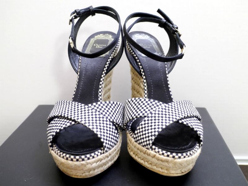 春夏美品◆Christian Dior クリスチャンディオール エスパドリーユ ウェッジソール ストラップ サンダル 37D◆ 春夏コーデの定番アイテム♪