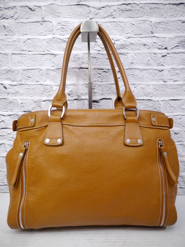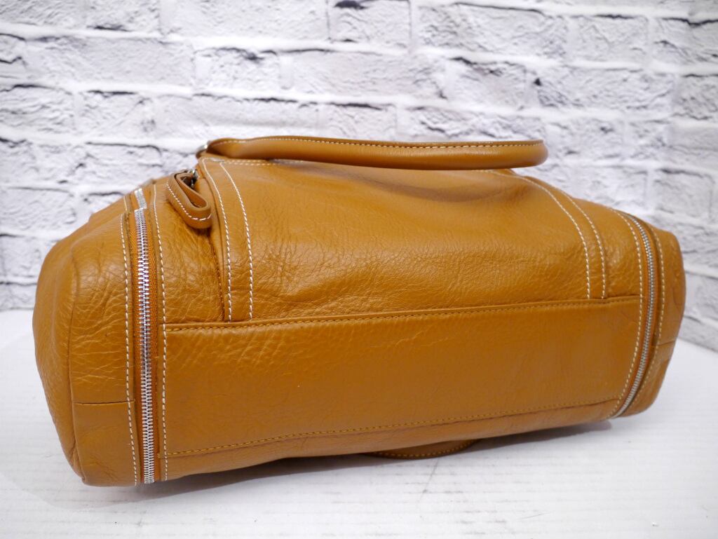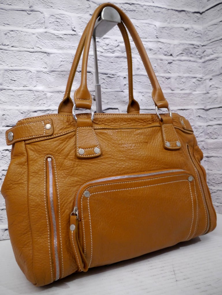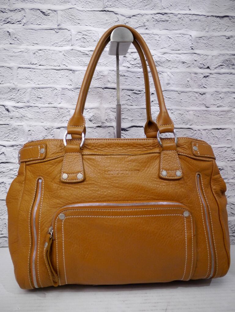 美品◆ LONGCHAMP PARIS ロンシャン エディターズライン ユニセックス A4対応ビジネス可 マルチジップ レザー トート ハンド バッグ 明茶◆
