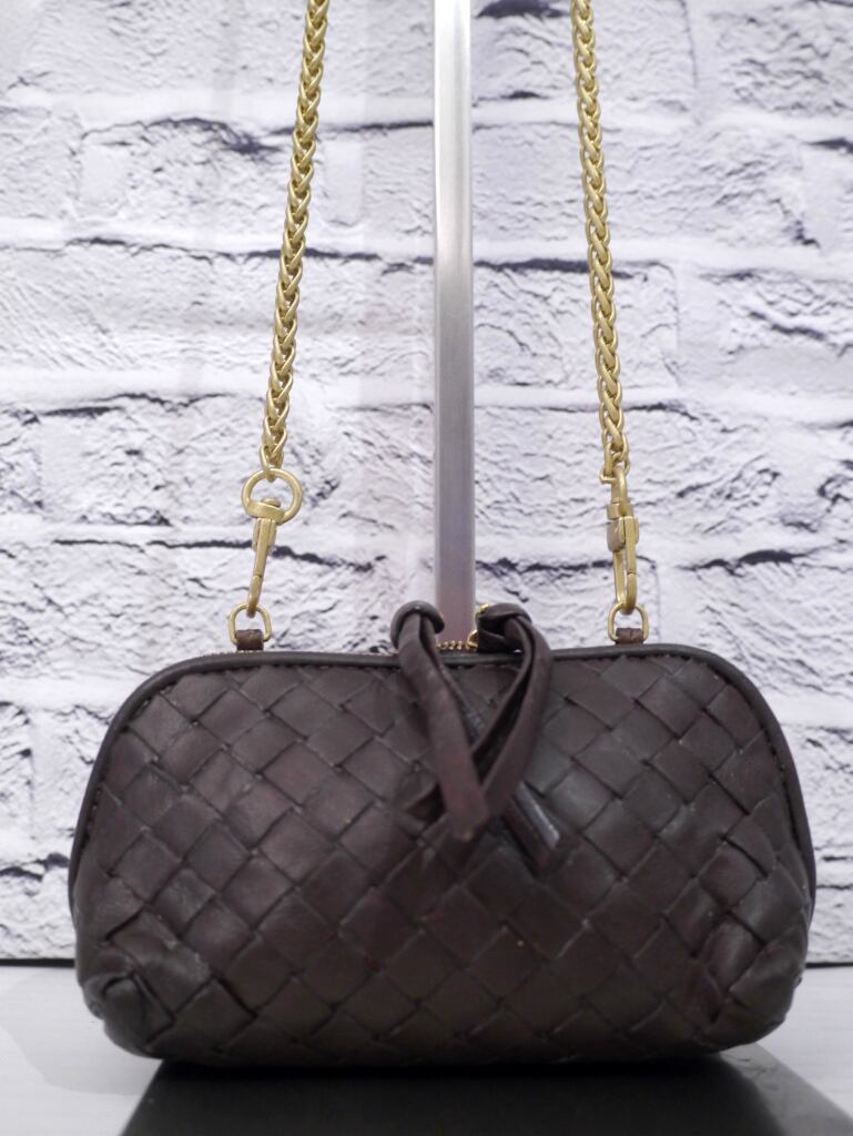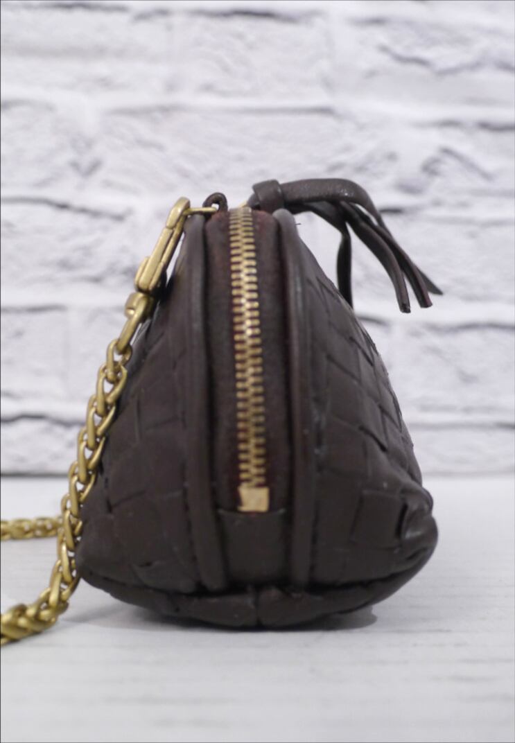 ◆BOTTEGA VENETA ボッテガヴェネタ イントレチャート クロスボディ レザー ショルダー ミニ バッグ ポーチ ポシェット 濃茶◆ 希少モデル
