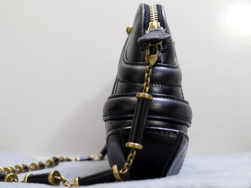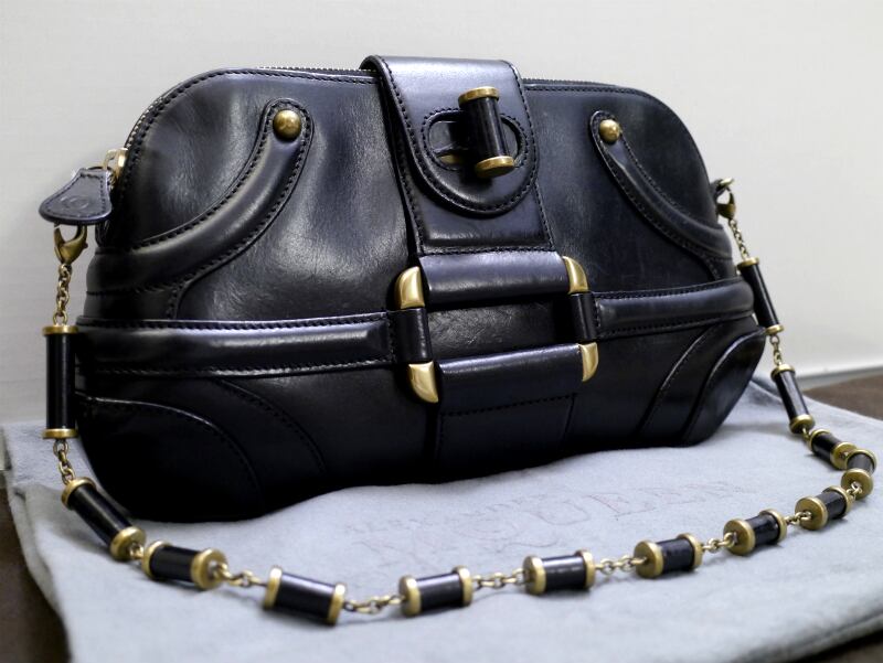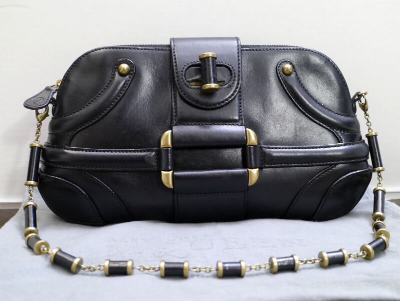 故・マックイーン時代のバッグで、エッジの効いたデザインの中にもイギリス人デザイナーの作品らしくどこか上品さも持ち合わせた時代を超えて愛されるアイテムです。