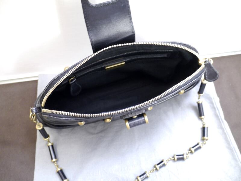 レア14万★Alexander McQUEEN アレキサンダーマックイーン ターンロック チェーンショルダー レザー バッグ 黒★ 希少なショルダーモデル♪