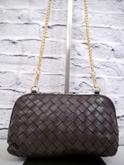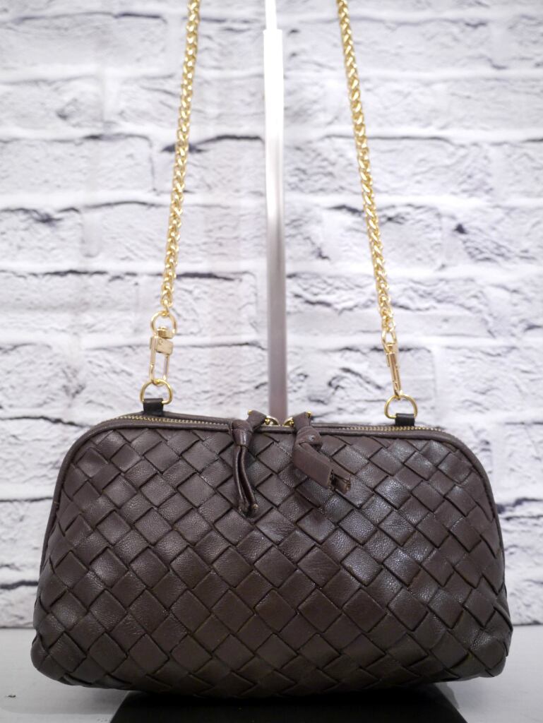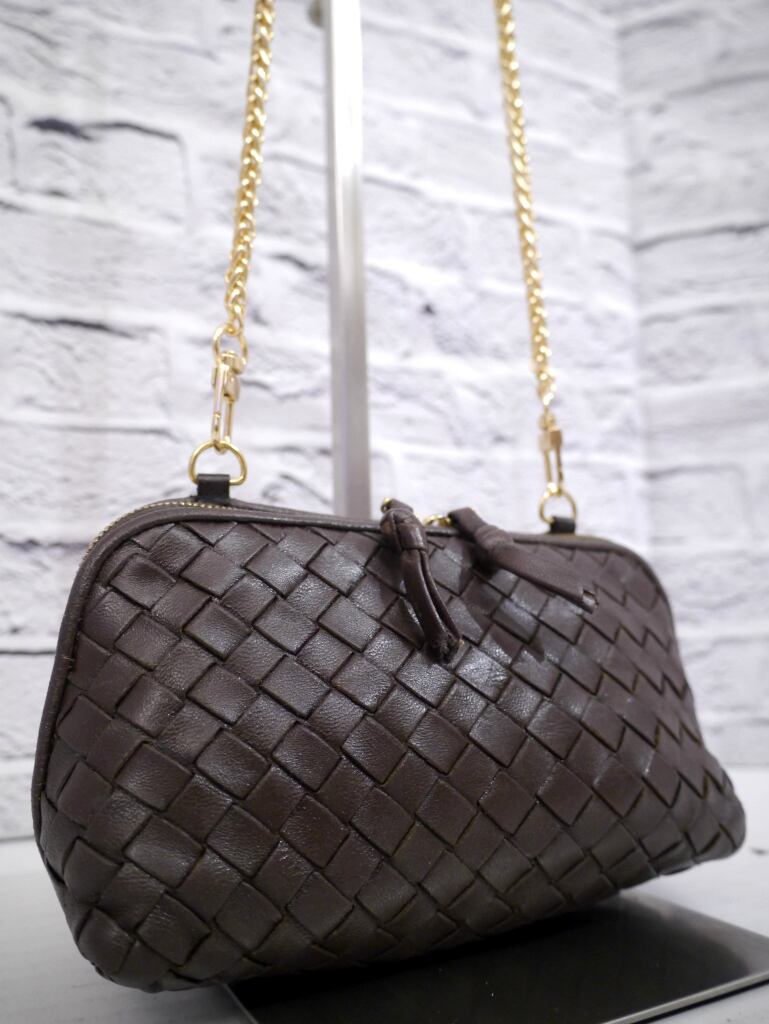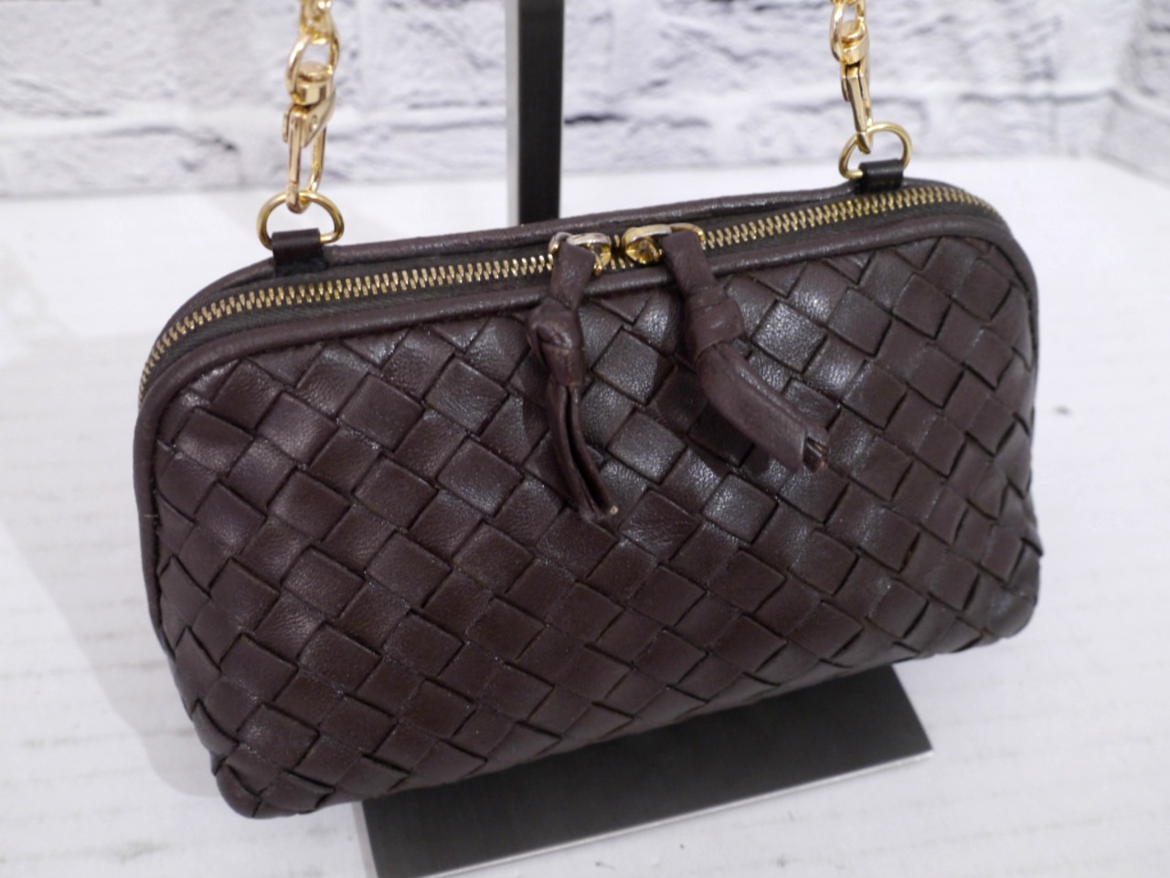 ◆BOTTEGA VENETA ボッテガヴェネタ イントレチャート クロスボディ レザー ショルダー ミニ バッグ ポーチ ポシェット 焦茶◆ 希少モデル