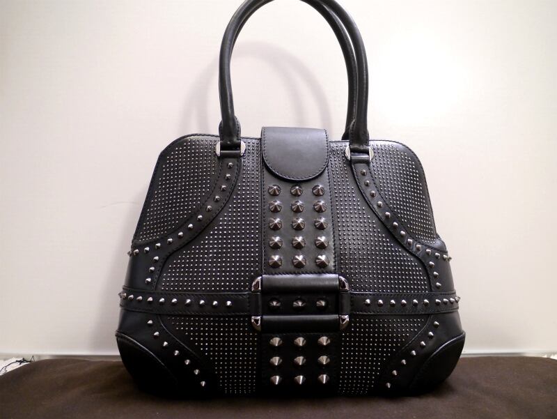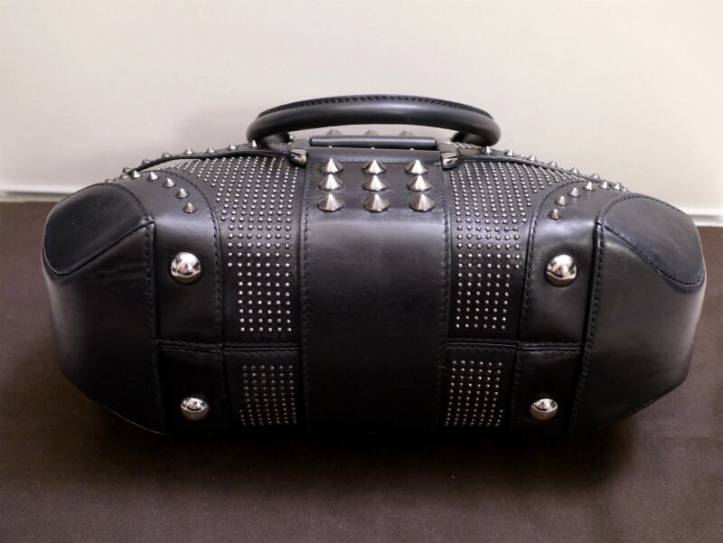 超レア32万★AlexanderMcQUEEN アレキサンダーマックイーン スタッズデザイン レザー トート ハンド バッグ 黒★ 色褪せないスタッズモデル