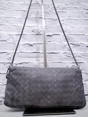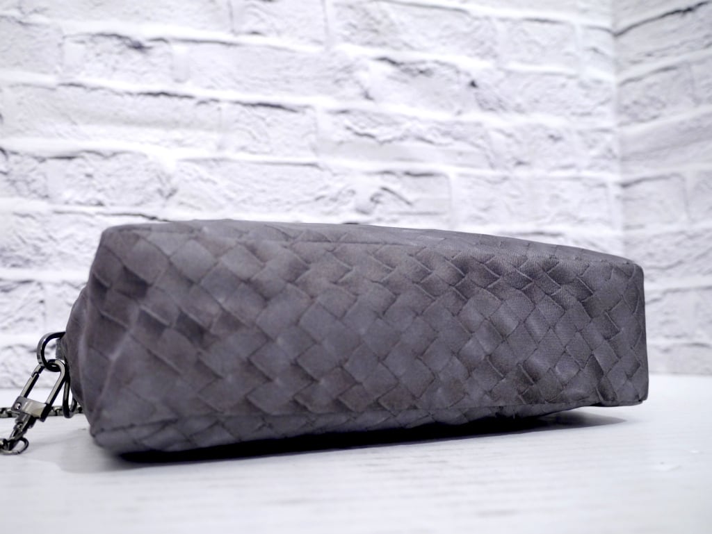 美品◆ BOTTEGA VENETA ボッテガヴェネタ イントレッチオ リュージョン ナイロン クロスボディ ショルダー バッグ ポーチ ポシェット 灰◆