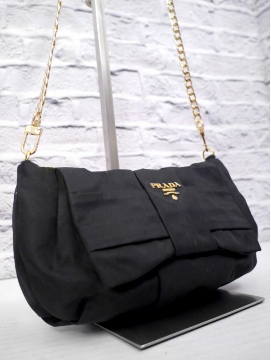 PRADA(プラダ) ビッグリボンデザイン テスートナイロン チェーンストラップ クロスボディ ミニ ショルダー バッグ(ポーチ)です。