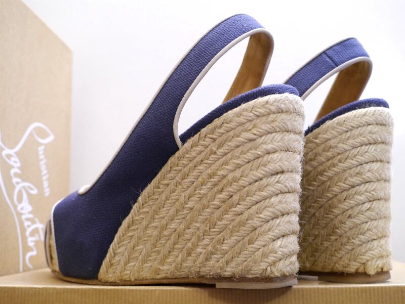 美品5万◆Christian Louboutin クリスチャンルブタン PILUCA エスパドリーユ ウェッジソール サンダル 紺◆ 使い回しに重宝!春夏定番モデル
