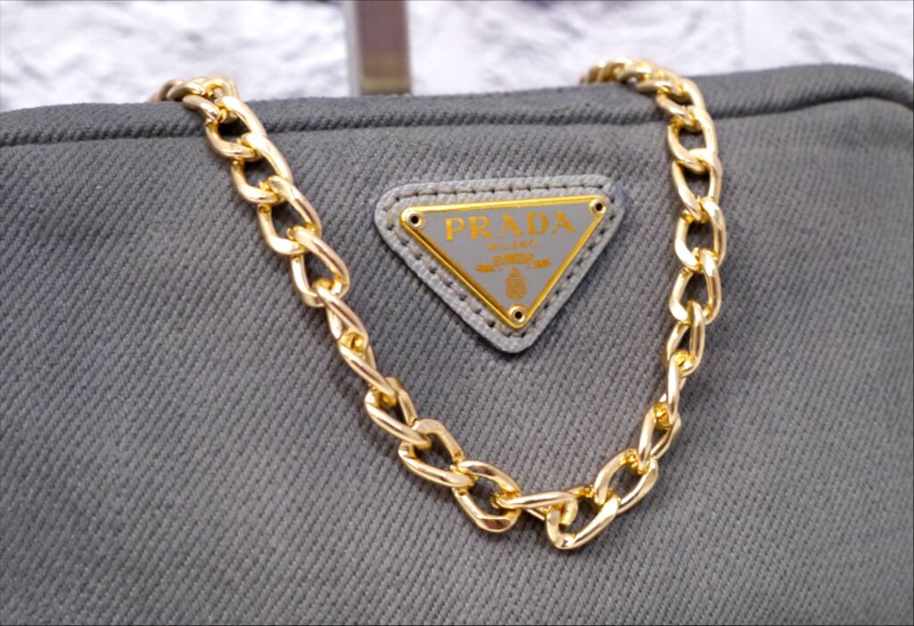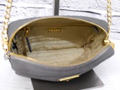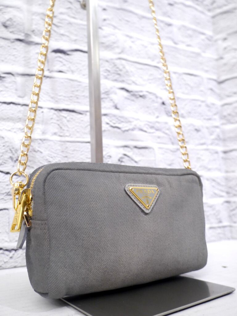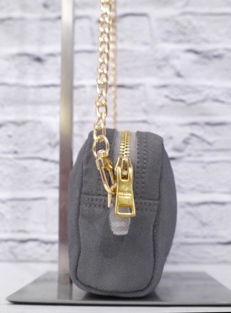 レア◆ PRADA プラダ CANAPA カナパ コットン キャンバス クロスボディ チェーンストラップ ショルダー バッグ カメラ バッグ ポーチ 灰x金