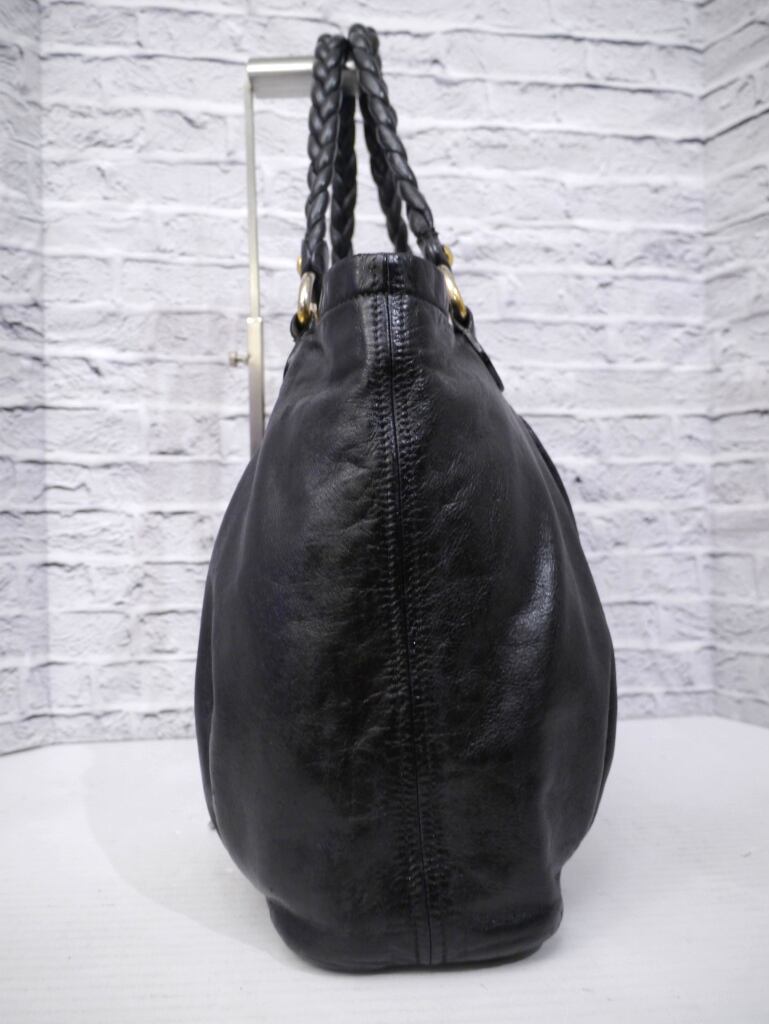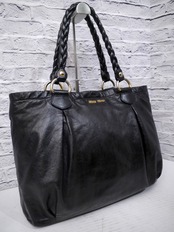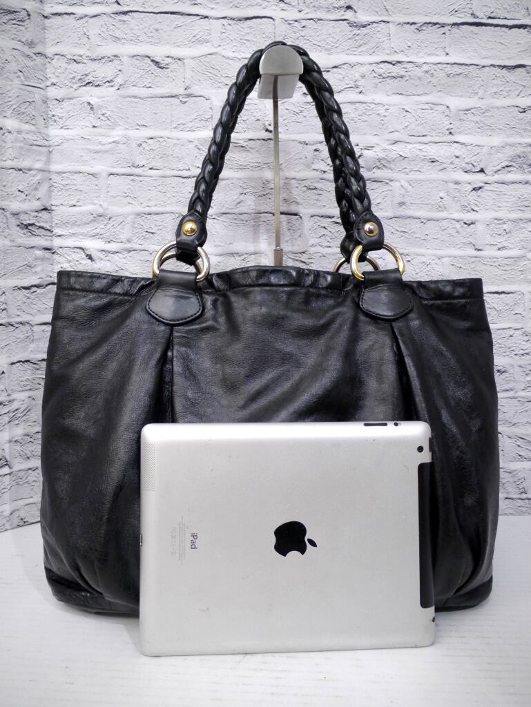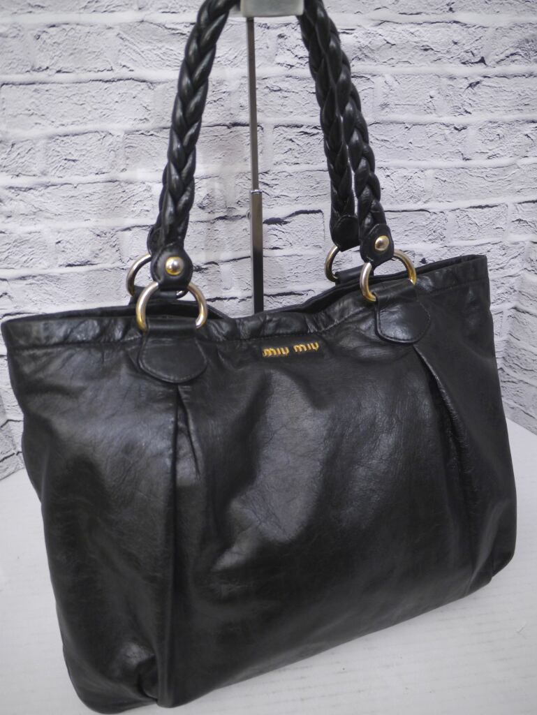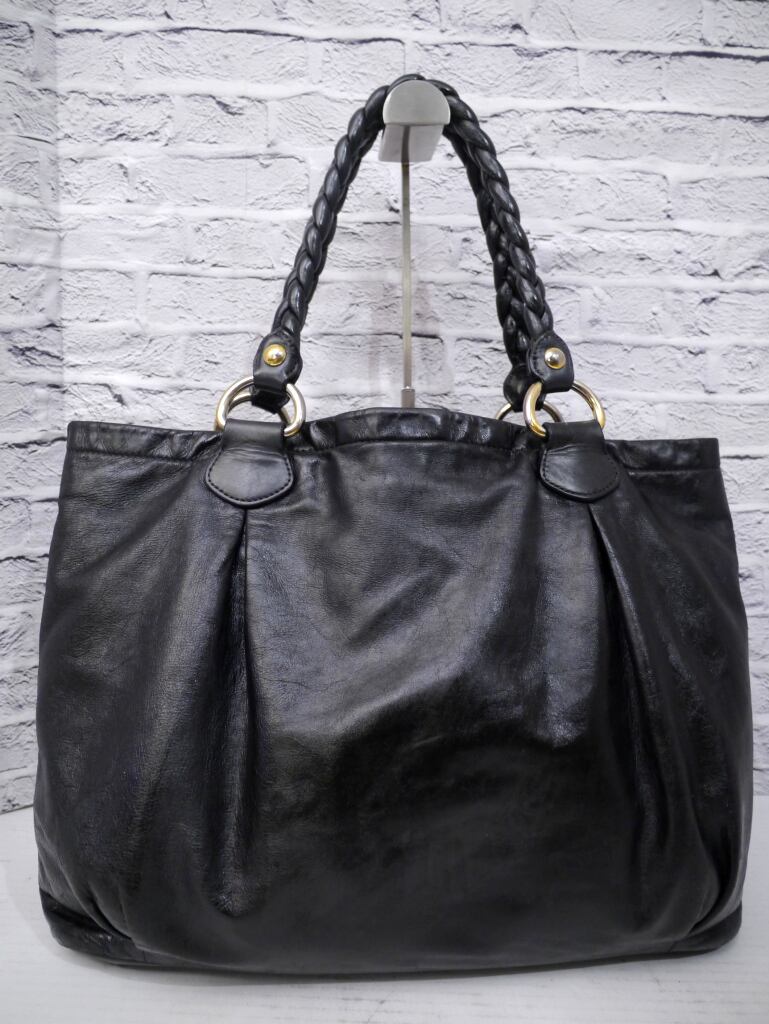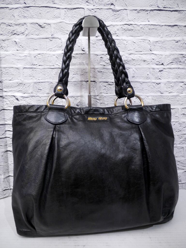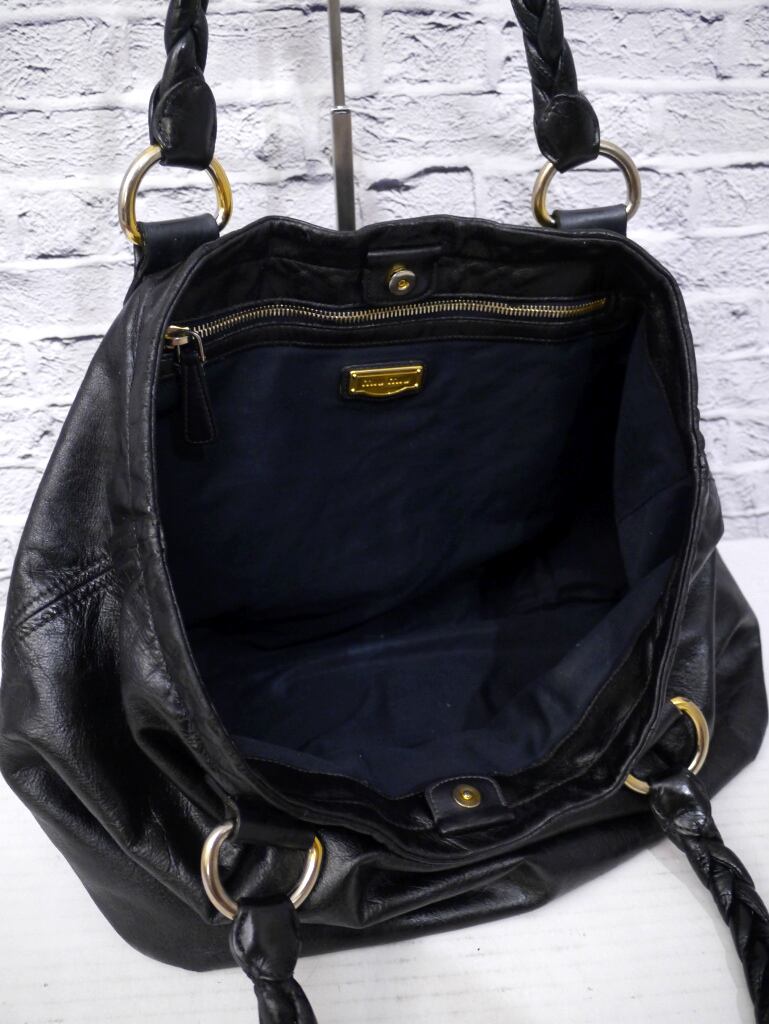 ◆ miu miu ミュウミュウ A4対応 ビジネス可 編込ハンドル レザー ショッパー トート ハンド バッグ 黒 ◆クラシックな雰囲気の気モデル♪