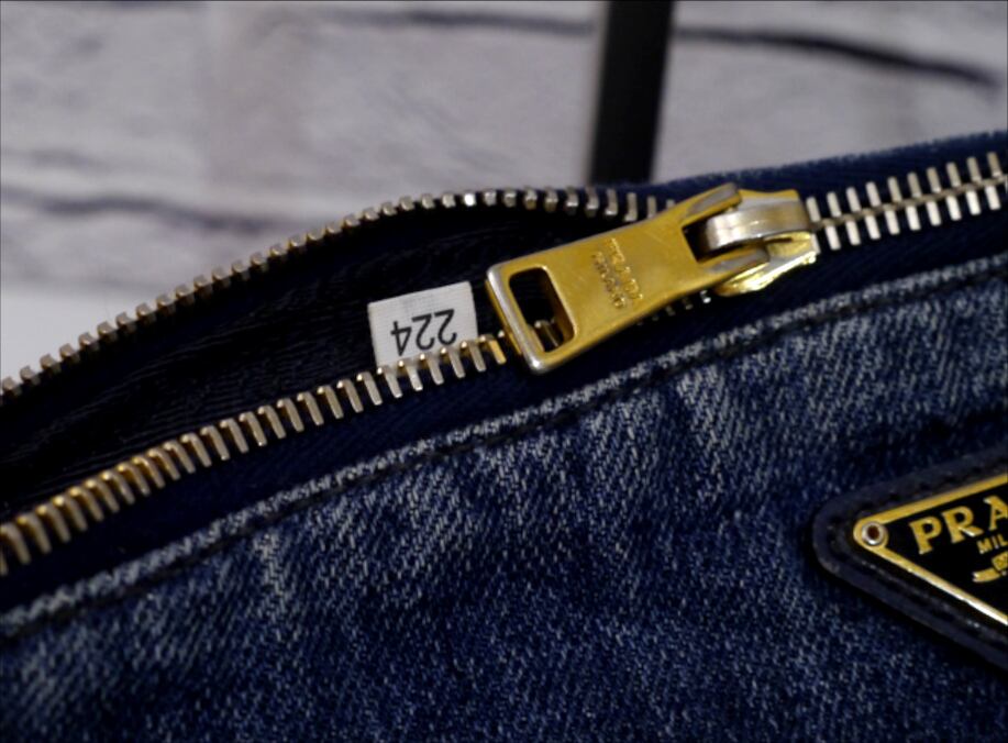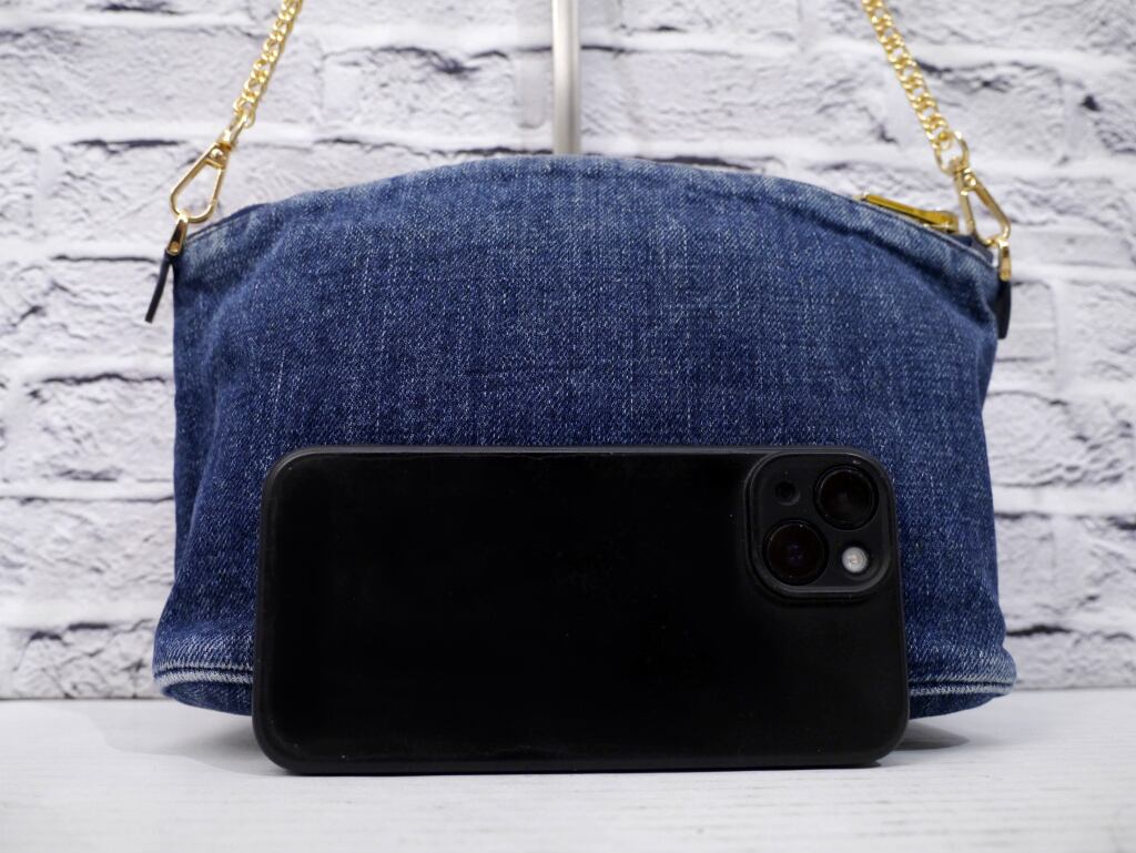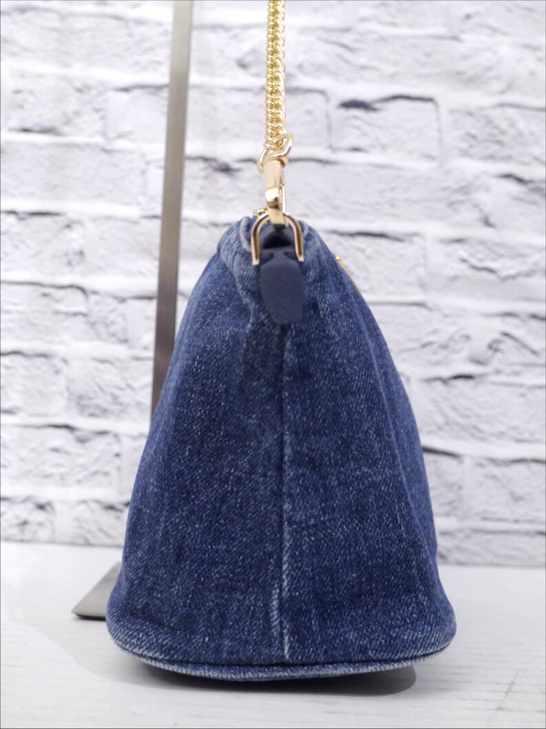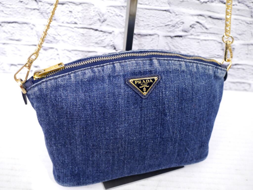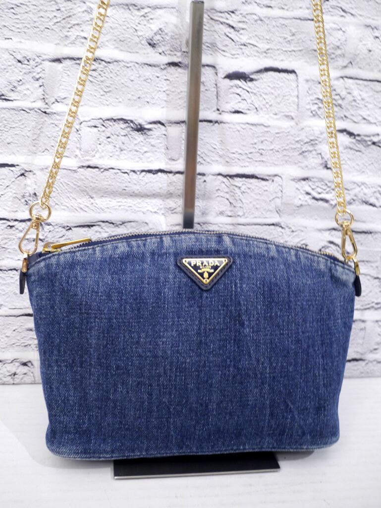 ◆ PRADA プラダ CANAPA カナパ クロスボディ チェーンストラップ デニム ミニ ショルダー バッグ カメラ バッグ ポーチ 青x金◆レアモデル