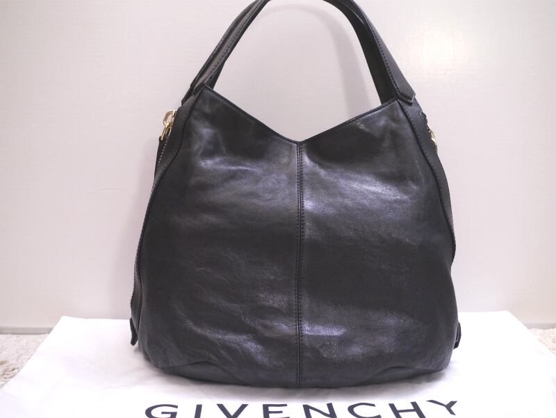 レア★GIVENCHY ジバンシィ ティナン ユニセックス レザートートハンド バッグ 黒★ジップ開閉で表情が変わるGIVENCHYのファントムライン♪