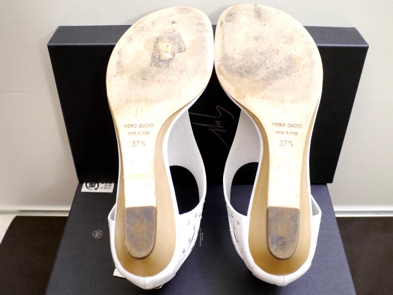 展示品7万◆GIUSEPPE ZANOTTI ジュゼッぺザノッティ ラインストーン ローヒール サンダル 白◆ 散りばめられたビジューがさりげなく主張♪