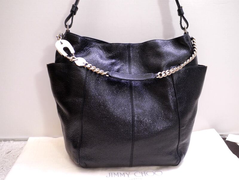 美品22万★JIMMY CHOO ジミーチュウ ANNA アンナ バイカーチェーン ハンドショルダー2way レザー トート バッグ 黒★ 希少なANNAのブラック