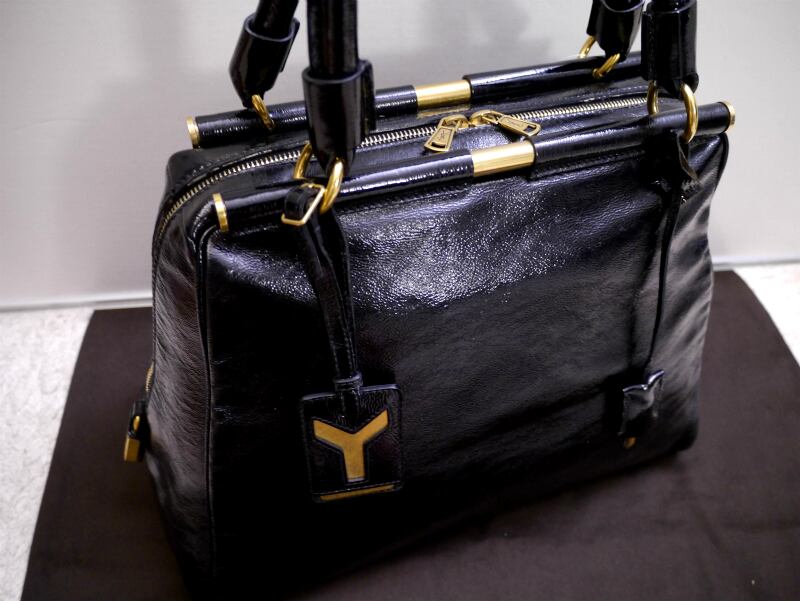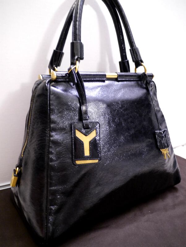 レア美品◆YvesSaintLaurent サンローラン マジョレール 男女可 大容量 パテントレザー トート バッグ 黒◆ マジョレールの希少なラージサイズ♪
