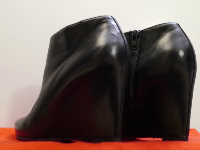 ★ChristianLouboutin クリスチャンルブタン インヒールウェッジソール レザー ブーティ ショート ブーツ 黒37★ 飽きのこない万能モデル♪