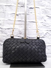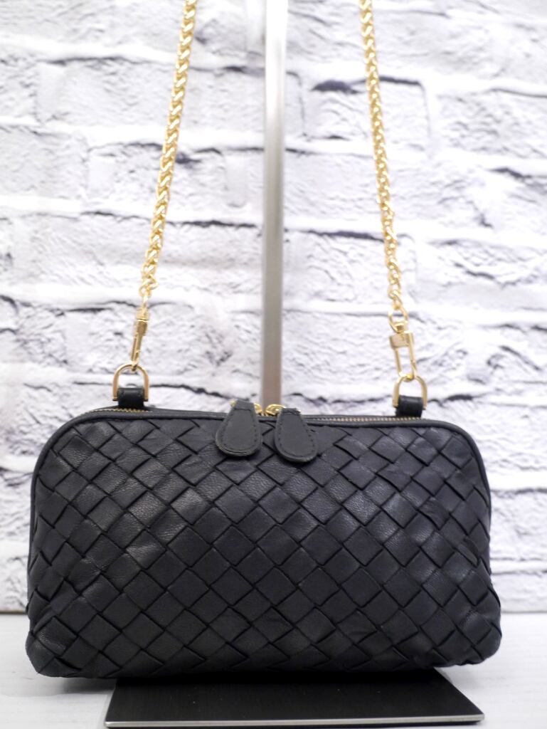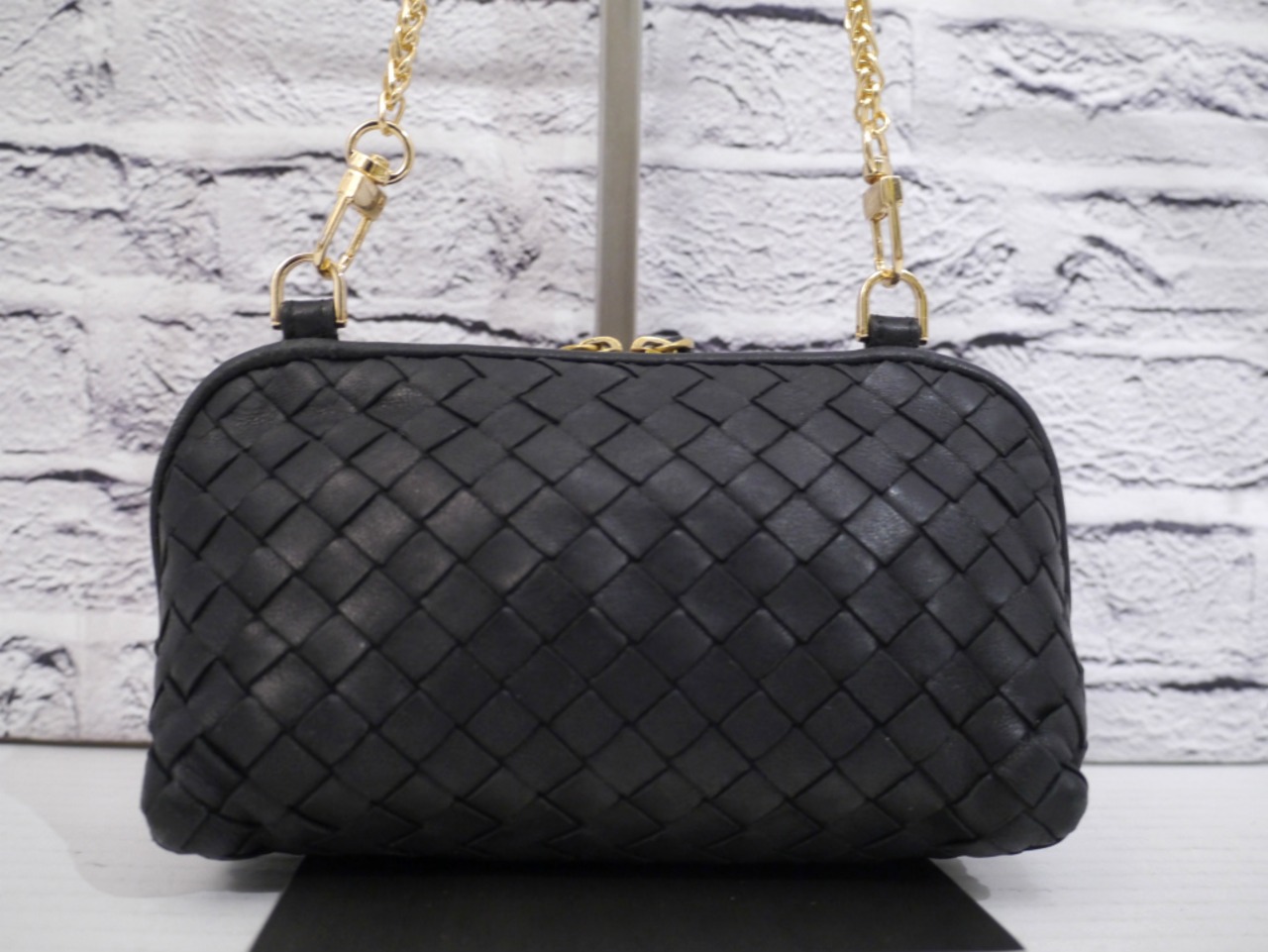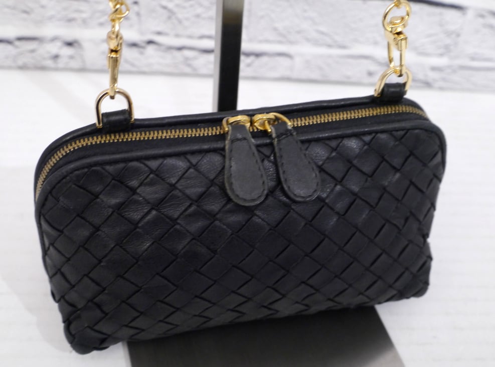 ◆BOTTEGA VENETA ボッテガヴェネタ イントレチャート クロスボディ レザー ショルダー ミニ バッグ ポーチ ポシェット 黒x金◆ 希少モデル