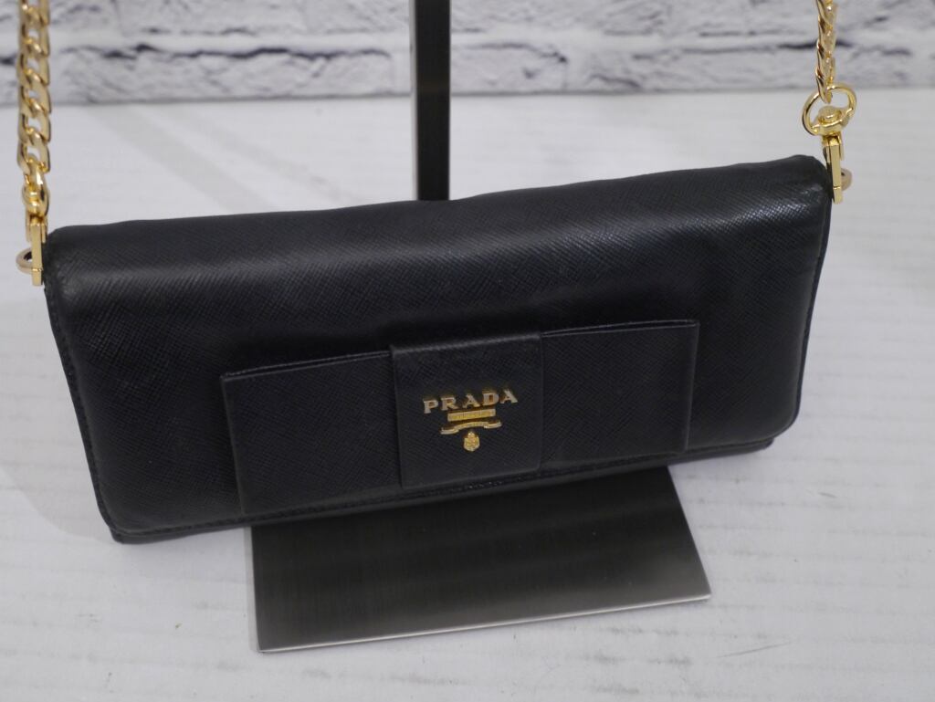 PRADA (プラダ) リボンデザイン サフィアーノレザー クロスボディ ショルダー ウォレット 長財布 です。