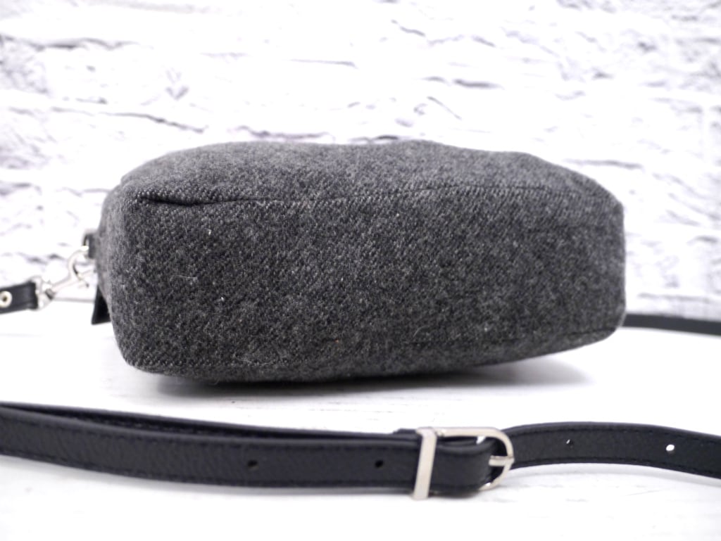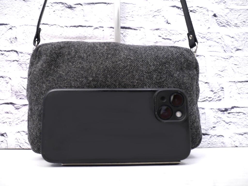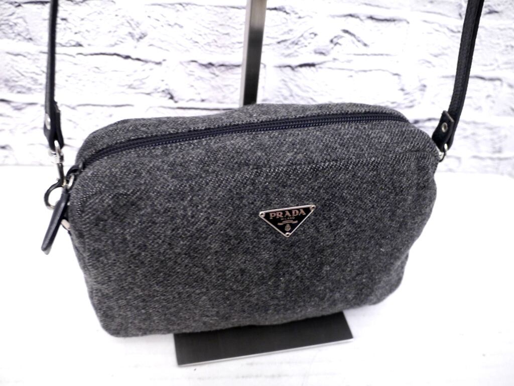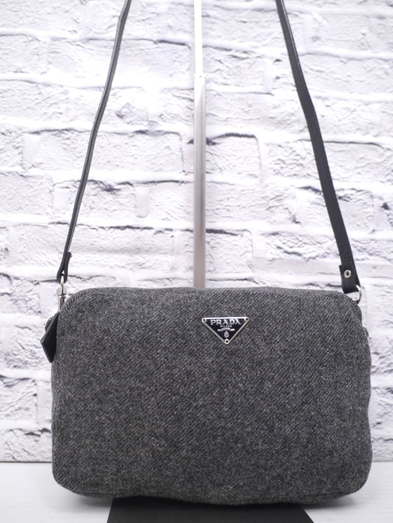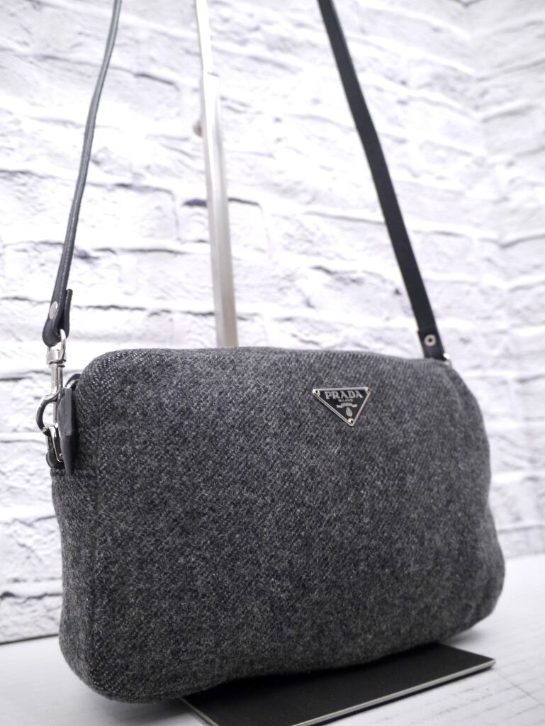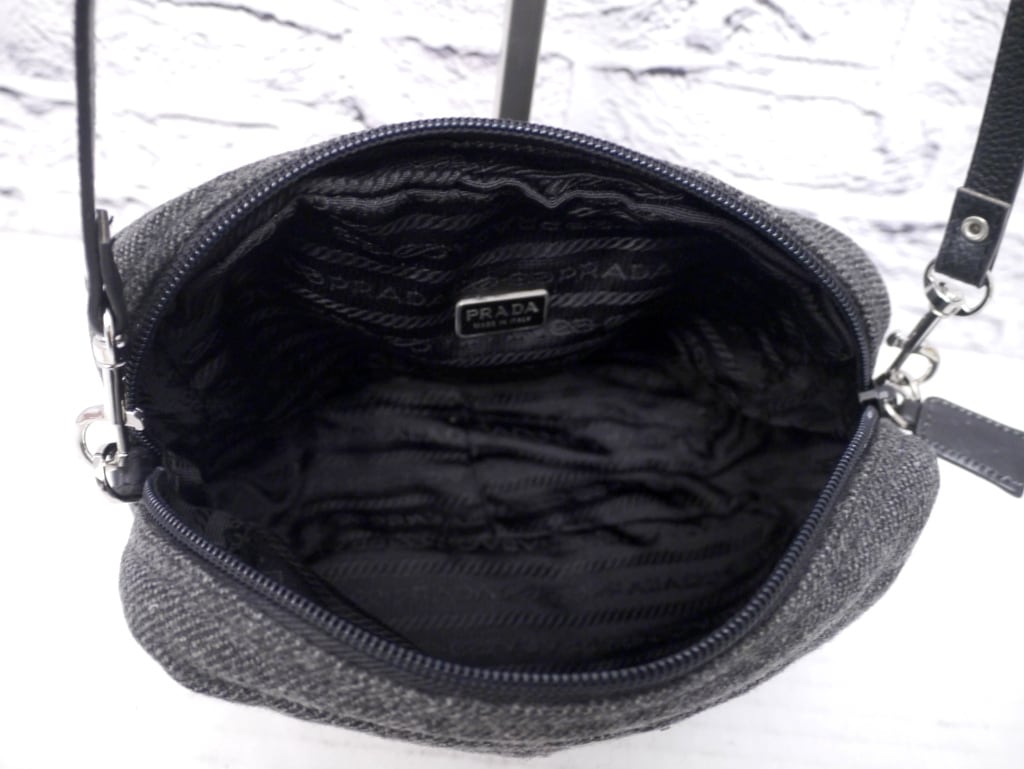 美品 ◆ PRADA プラダ ウールxレザー クロスボディ バッグ ショルダー カメラ バッグ ポーチ ポシェット 灰x黒◆ クロスボディ仕様の定番♪