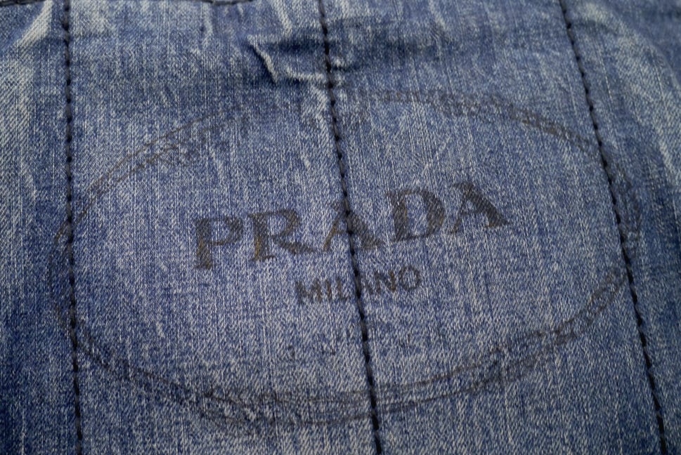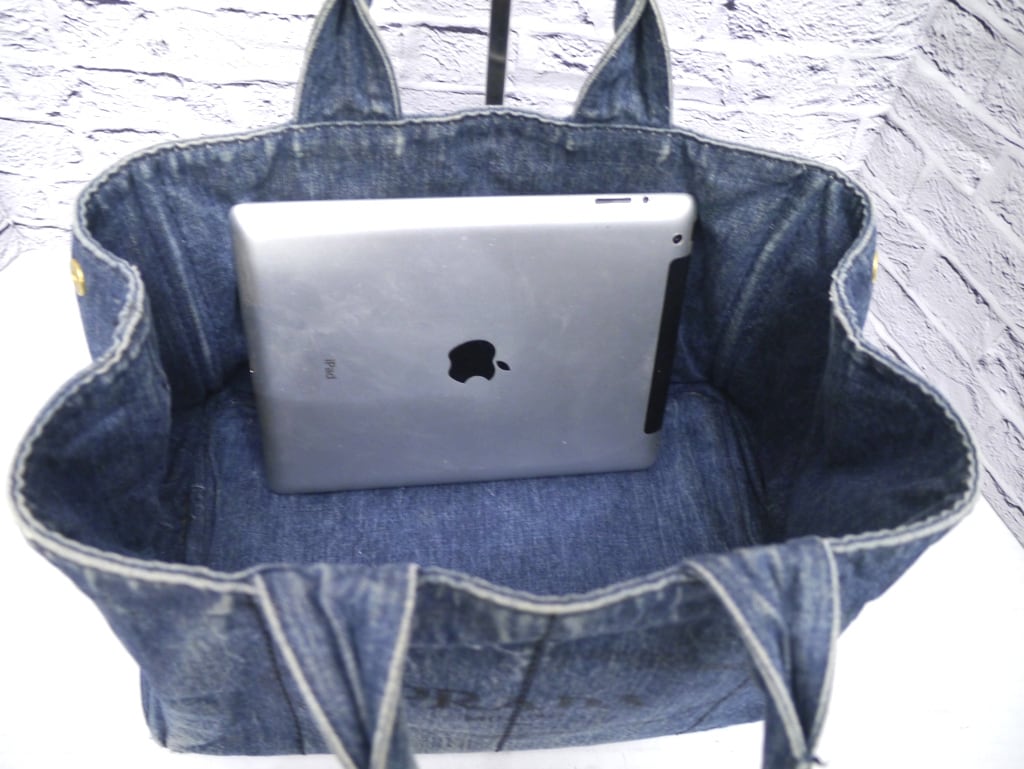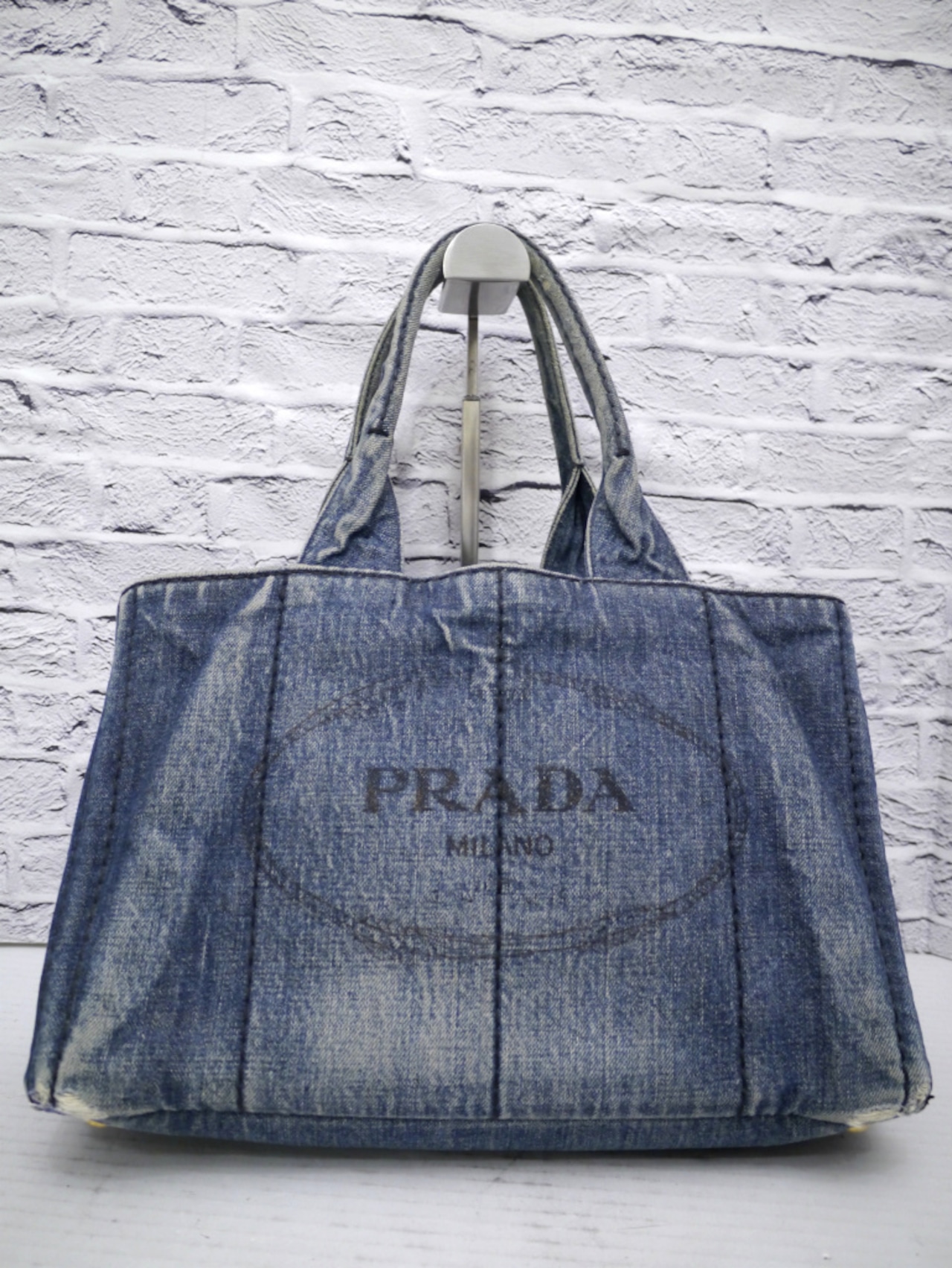 PRADA(プラダ) CANAPA (カナパ) ロゴデザイン サイド開閉 デニム地 トート ハンド バッグです。