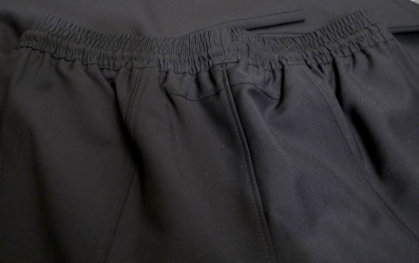 合わせるアイテム次第で違った表情を見せる面白いアイテムで、ウエストゴム仕様にワイドシルエットの動きやすい作りなのでノンストレスでご着用頂けると思います。