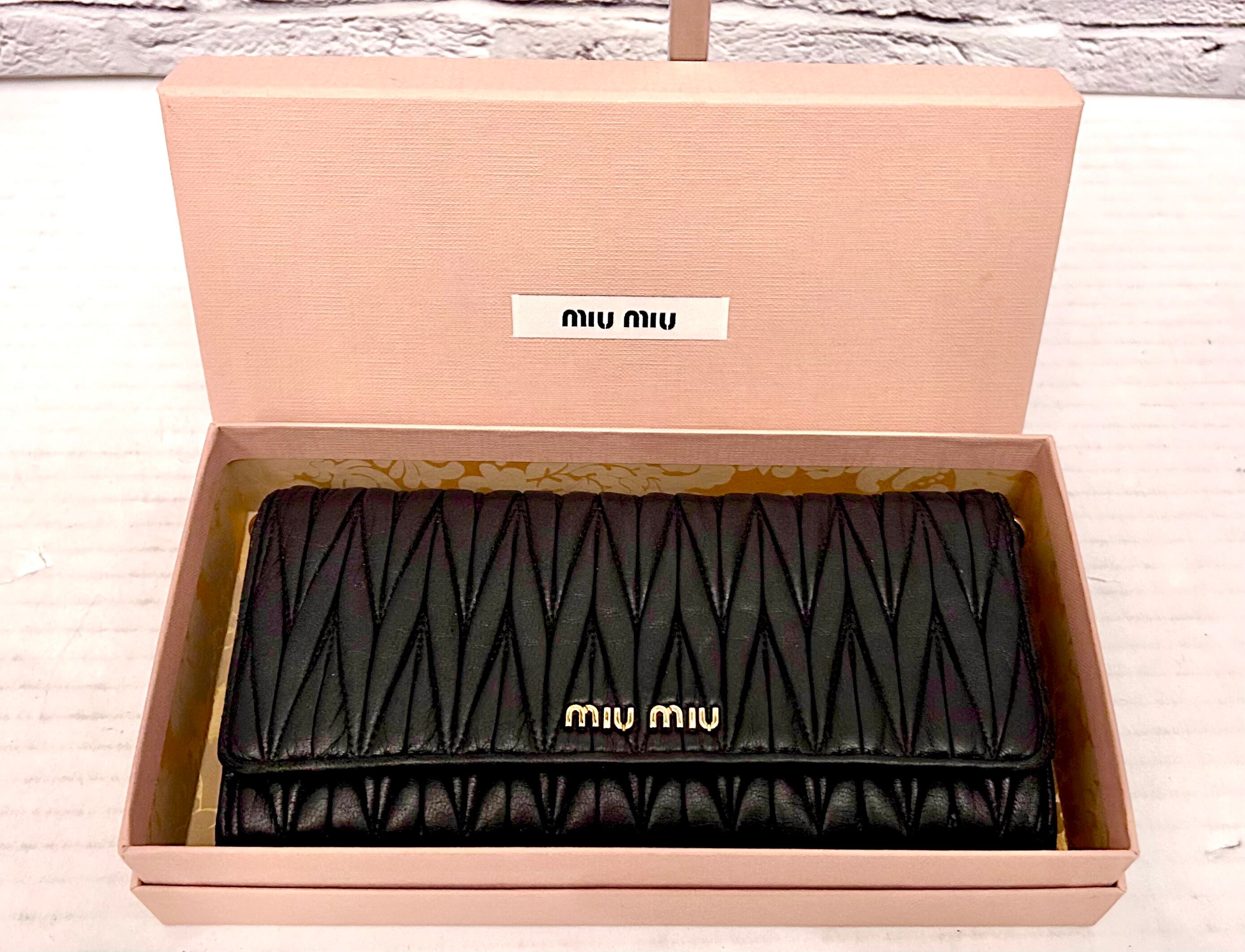 ◆miu miu ミュウミュウ MATELASSE マテラッセ クロスボディ ショルダー ウォレット バッグ ポシェット 黒x金◆ クロスボディ仕様の定番♪