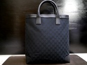 GUCCI(グッチ) GG柄 キャンバス x レザー切替 縦型トート ハンド バッグです。