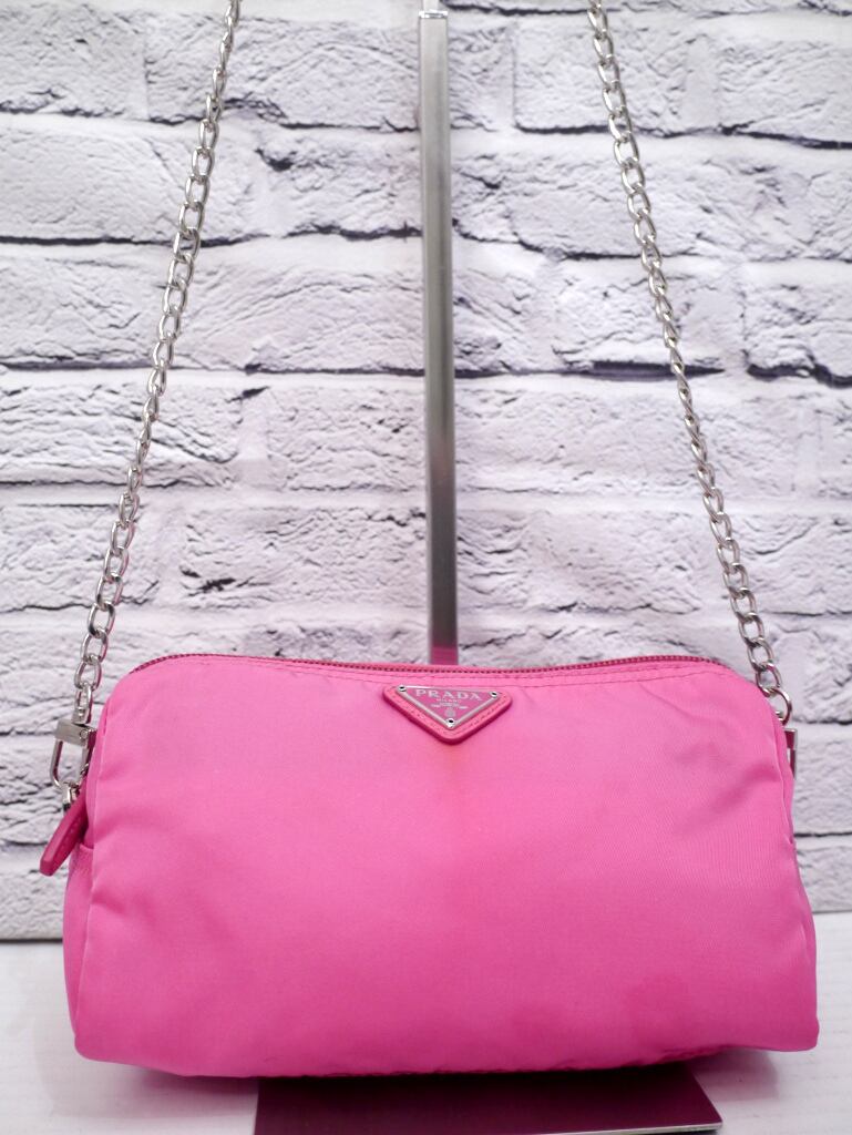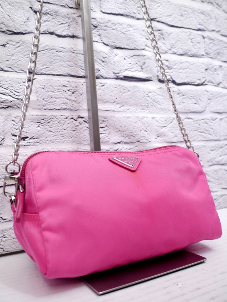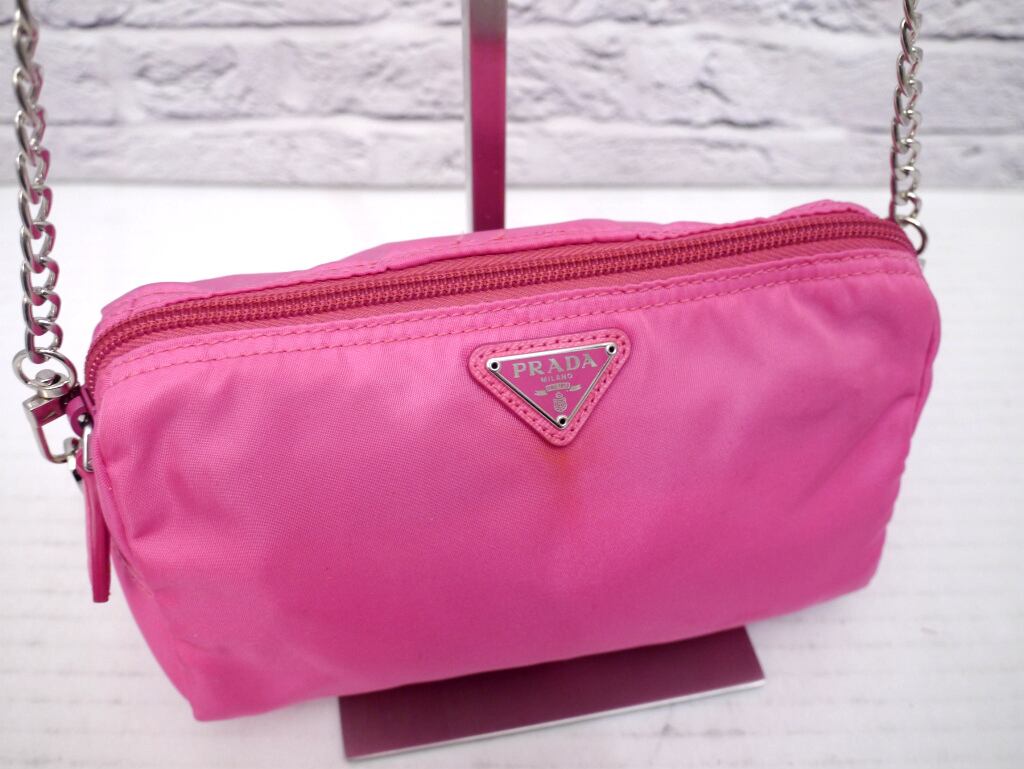 レア◆ PRADA プラダ ナイロンxレザー クロスボディ ショルダー カメラ バッグ ポーチ ポシェット ピンク◆ クロスボディ仕様の希少カラー