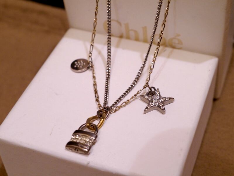 レア◆Chloeクロエ パドロックデザイン Wチェーンネックレス■