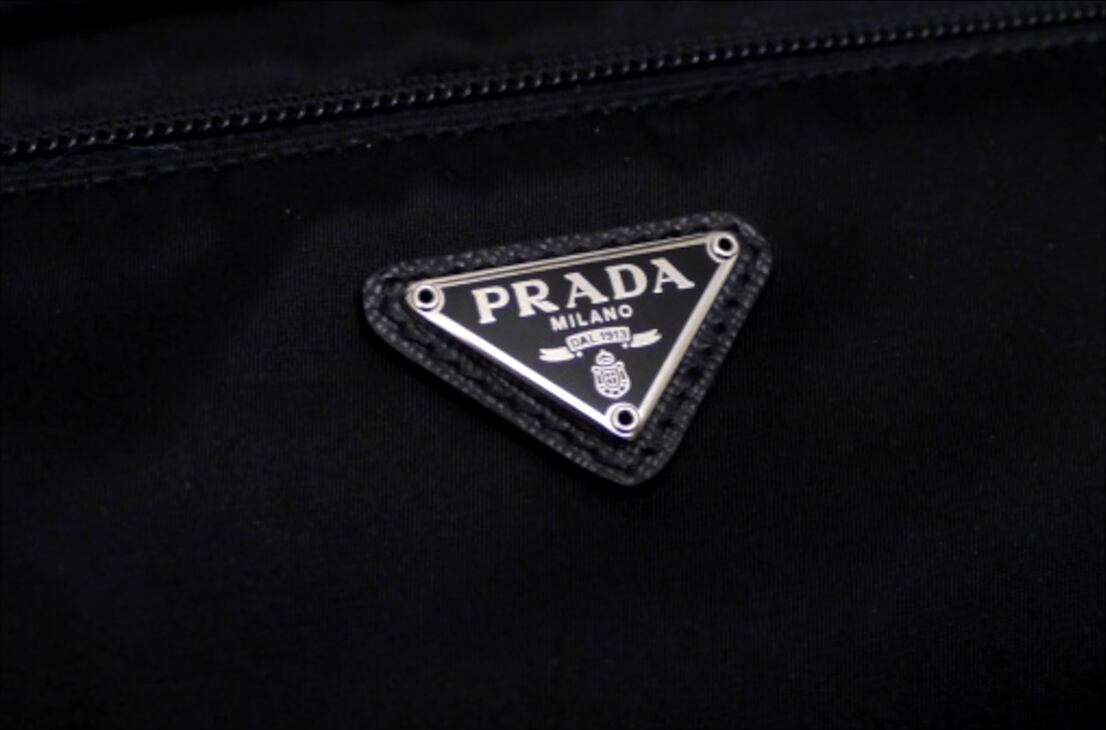 トライアングルプレートがさりげなくアクセントになったシンプルなデザインで、毎シーズンのようにリリースされるプラダの定番モデルです。