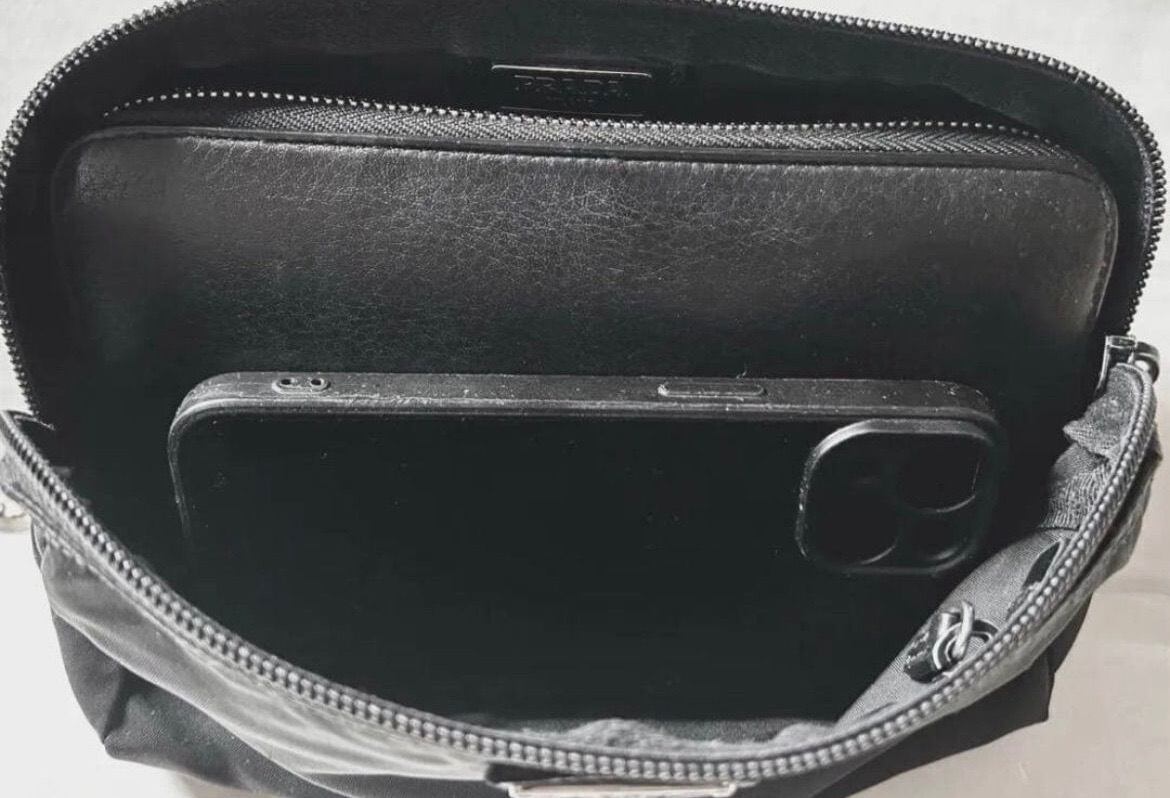 美品◆ PRADA プラダ ナイロンxレザー クロスボディ ショルダーバッグ カメラ バッグ ポーチ ポシェット黒◆使い勝手の良い定番人気モデル