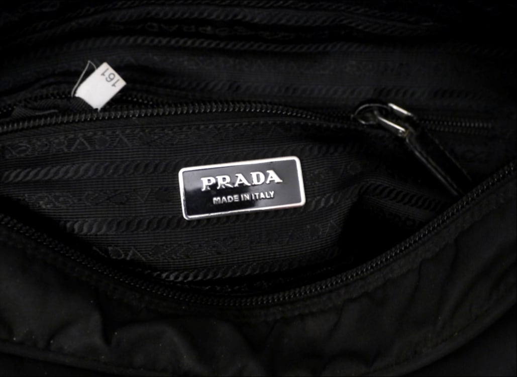 お馴染みのトライアングルプレートがさりげなくアクセントになったシンプルなデザインで、毎シーズンのようにリリースされるプラダの定番モデルです。