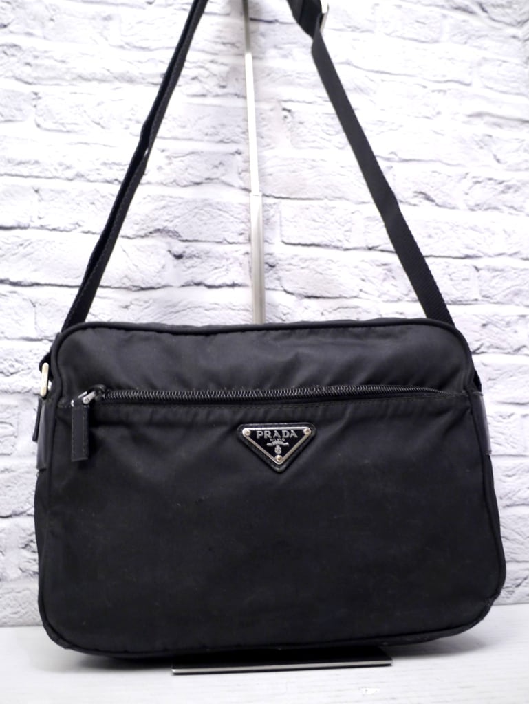 ◆ PRADA プラダ ユニセックス ナイロンxレザー クロスボディ ショルダー カメラ バッグ ポシェット 黒◆ クロスボディ仕様の定番モデル♪