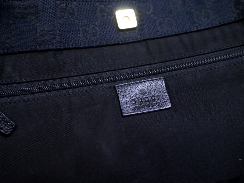スタイリッシュなブラックレザーに開口部内側のGG柄が覗くさりげなくお洒落なデザインで、主張も強過ぎないため幅広い年代の方にご愛用頂けると思います。