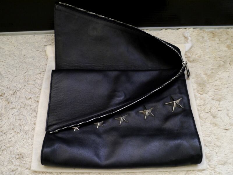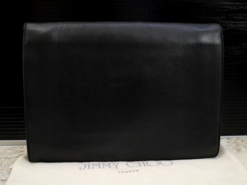 美品★JIMMY CHOO ジミーチュウ DEREKICY スタッズデザイン クラッチ バッグ タブレットケース 黒★ 使い勝手の良いユニセックス仕様の大きめサイズ♪