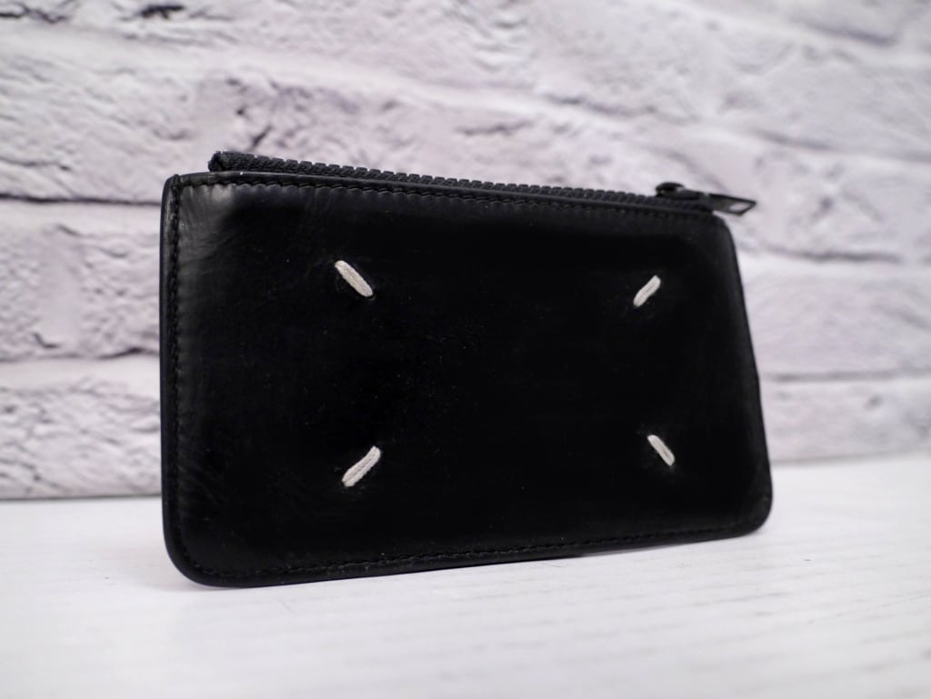定番◆ Maison Margiela メゾンマルジェラ ユニセックス 4ステッチ レザー フラグメント ケース カード パスケース 小銭入れ 財布 定期 黒